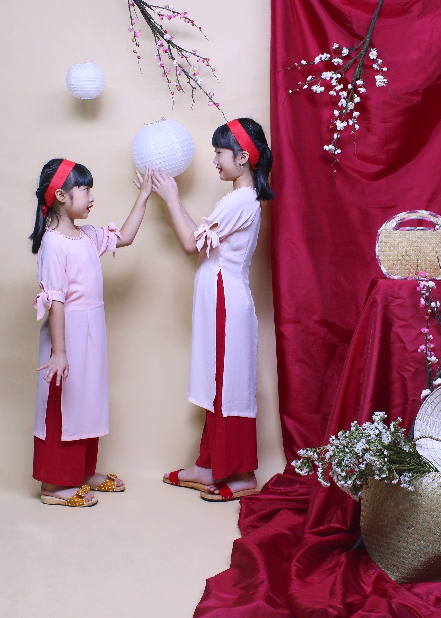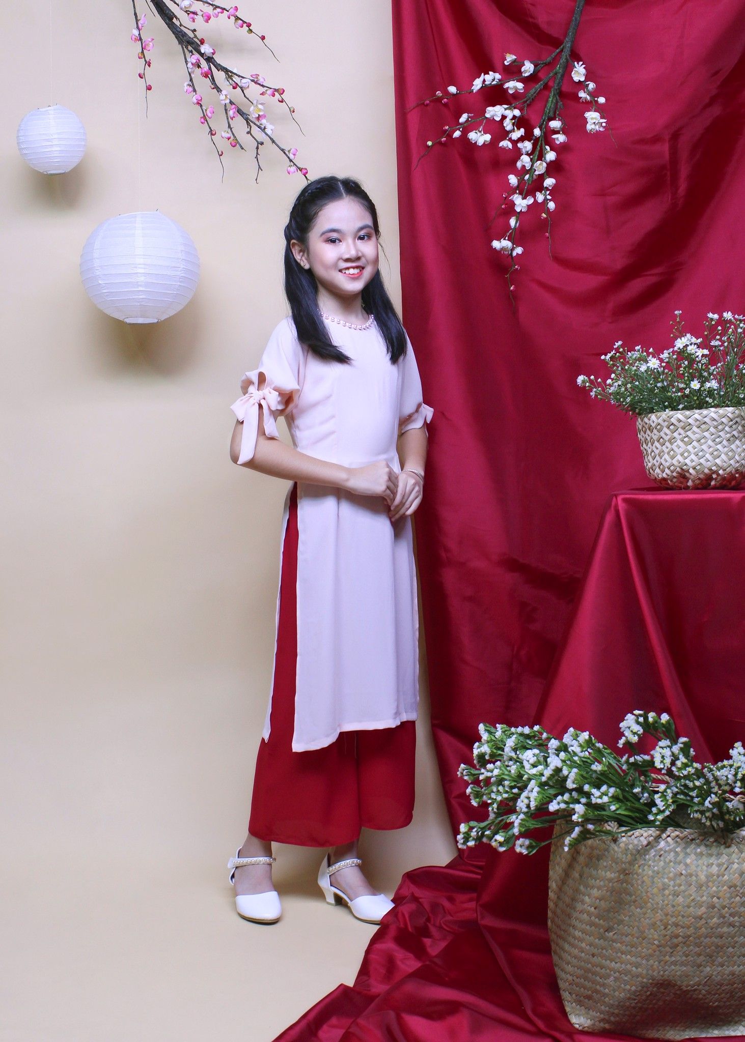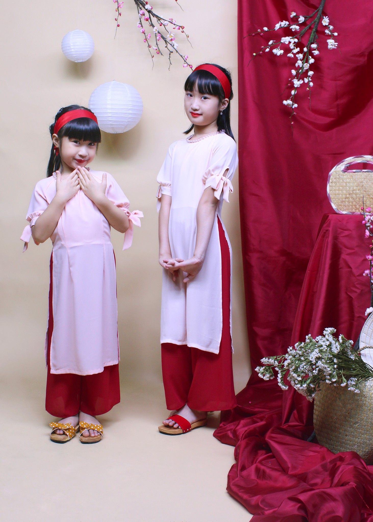 Bộ áo dài bé gái hạnh phúc hồng - GAD003
