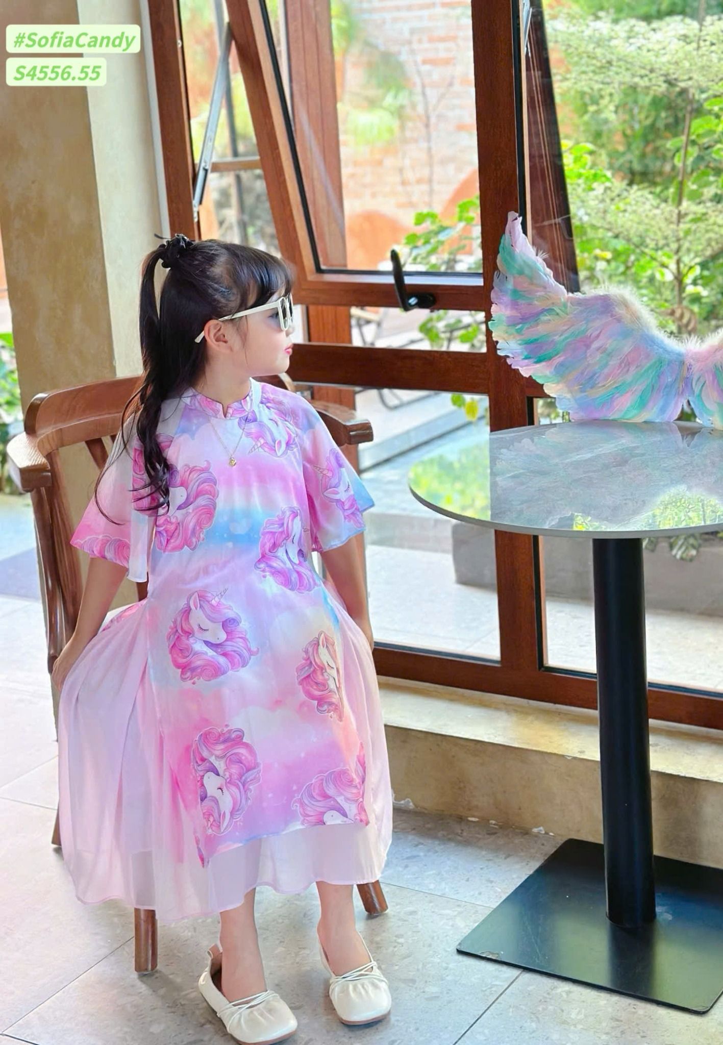 Áo dài bé gái pony hồng xinh xắn S4556-55 kèm mấn pony GPK031 - GAD032