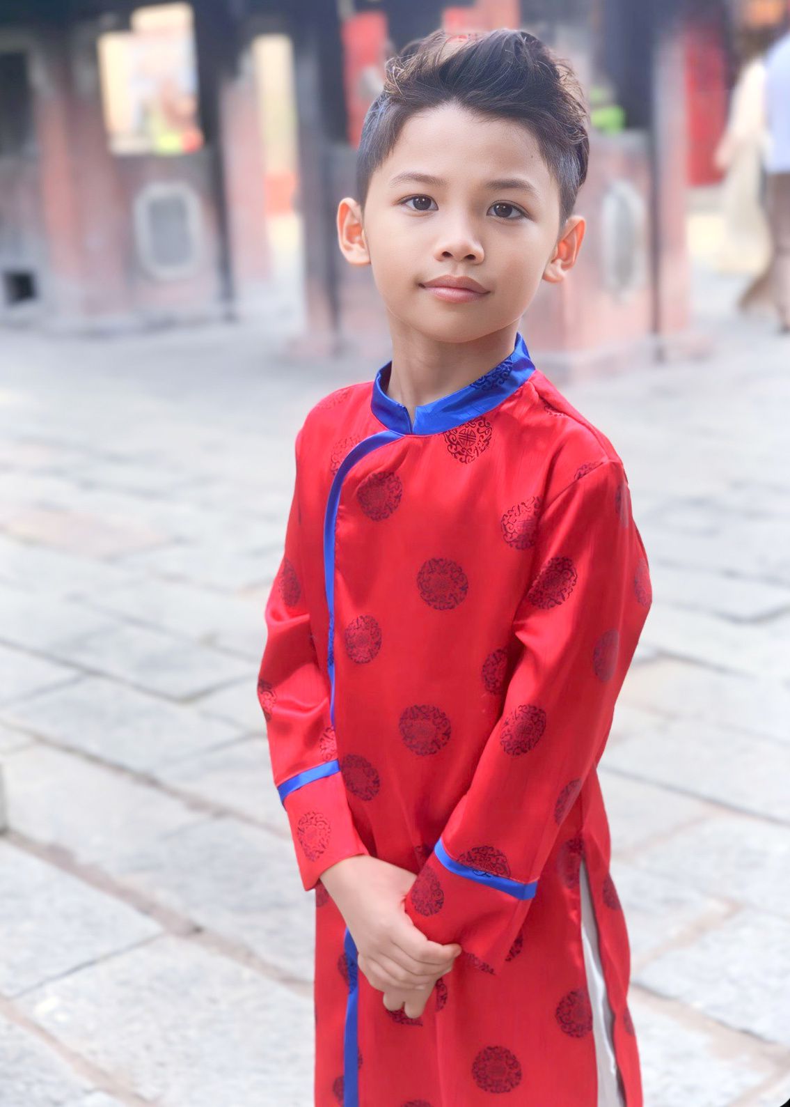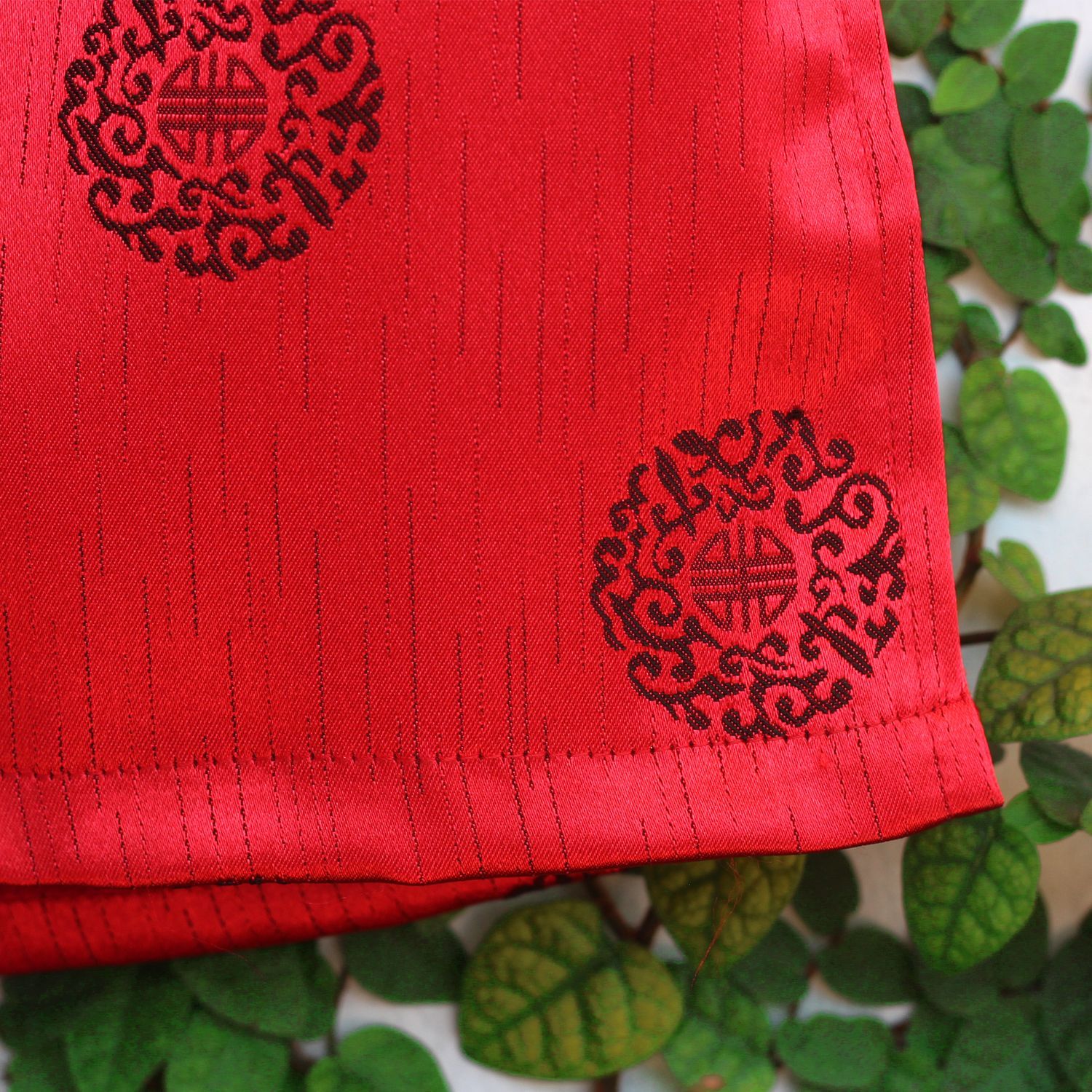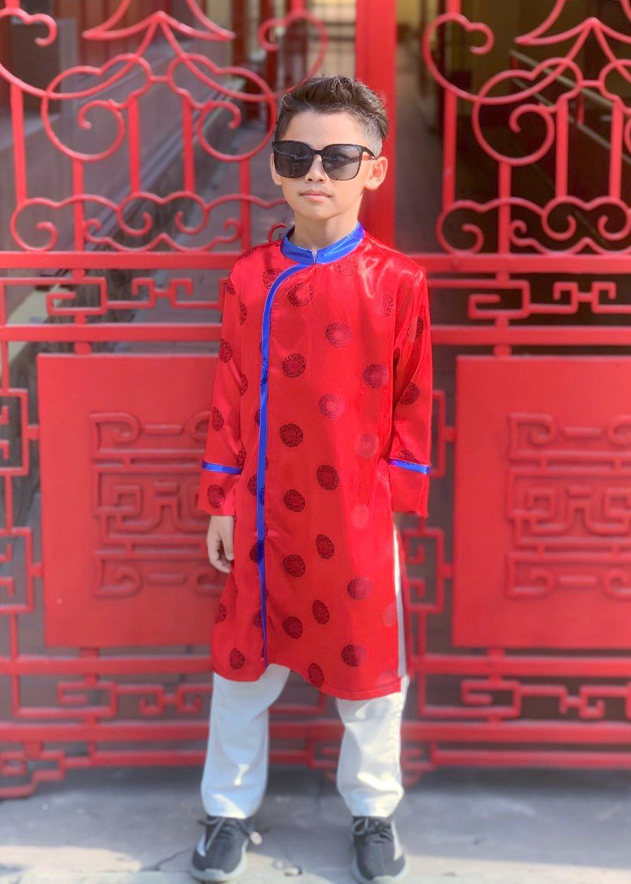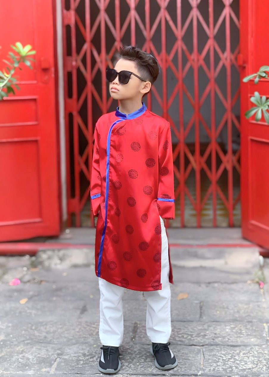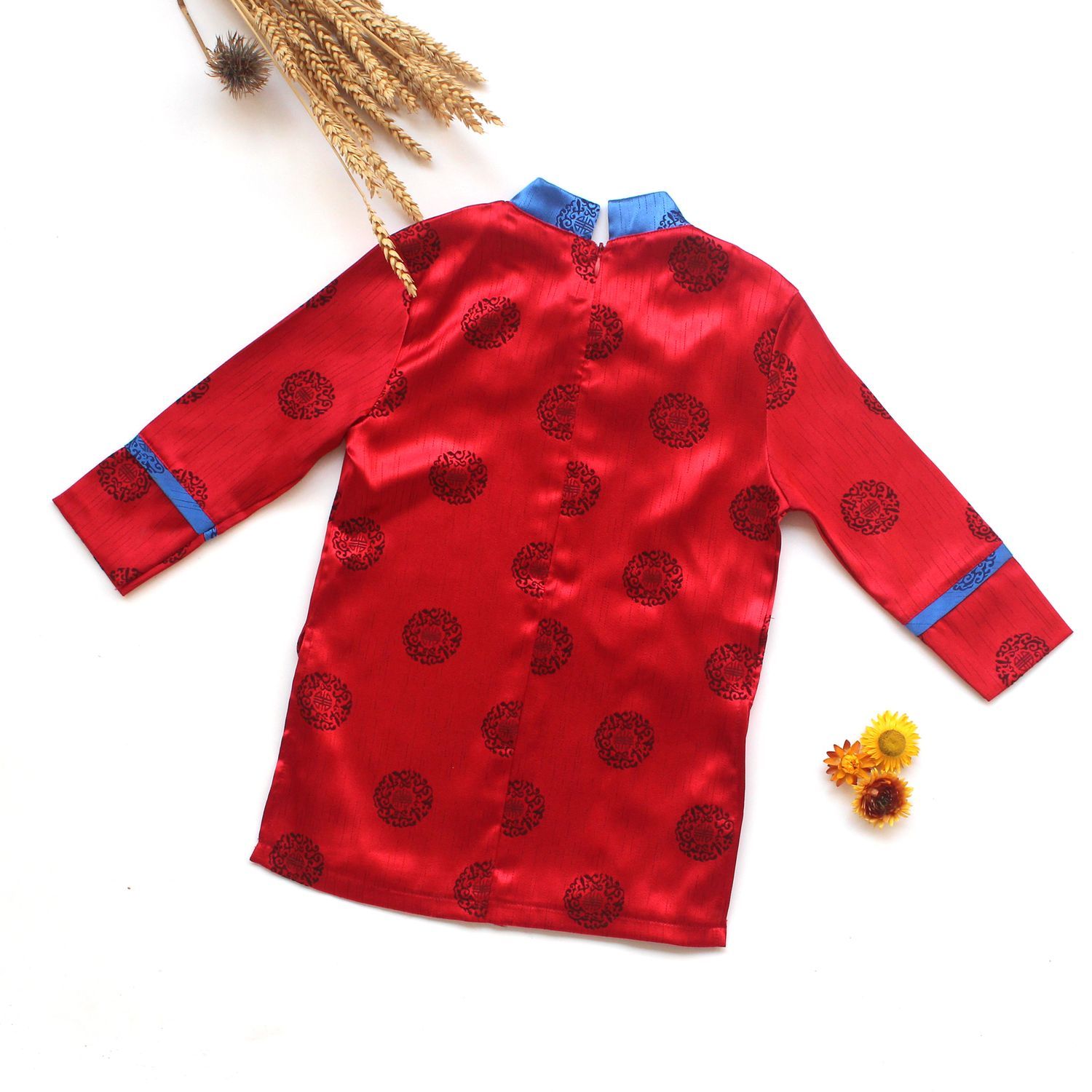 Áo dài bé trai đồng tiền đỏ may mắn - TAD011