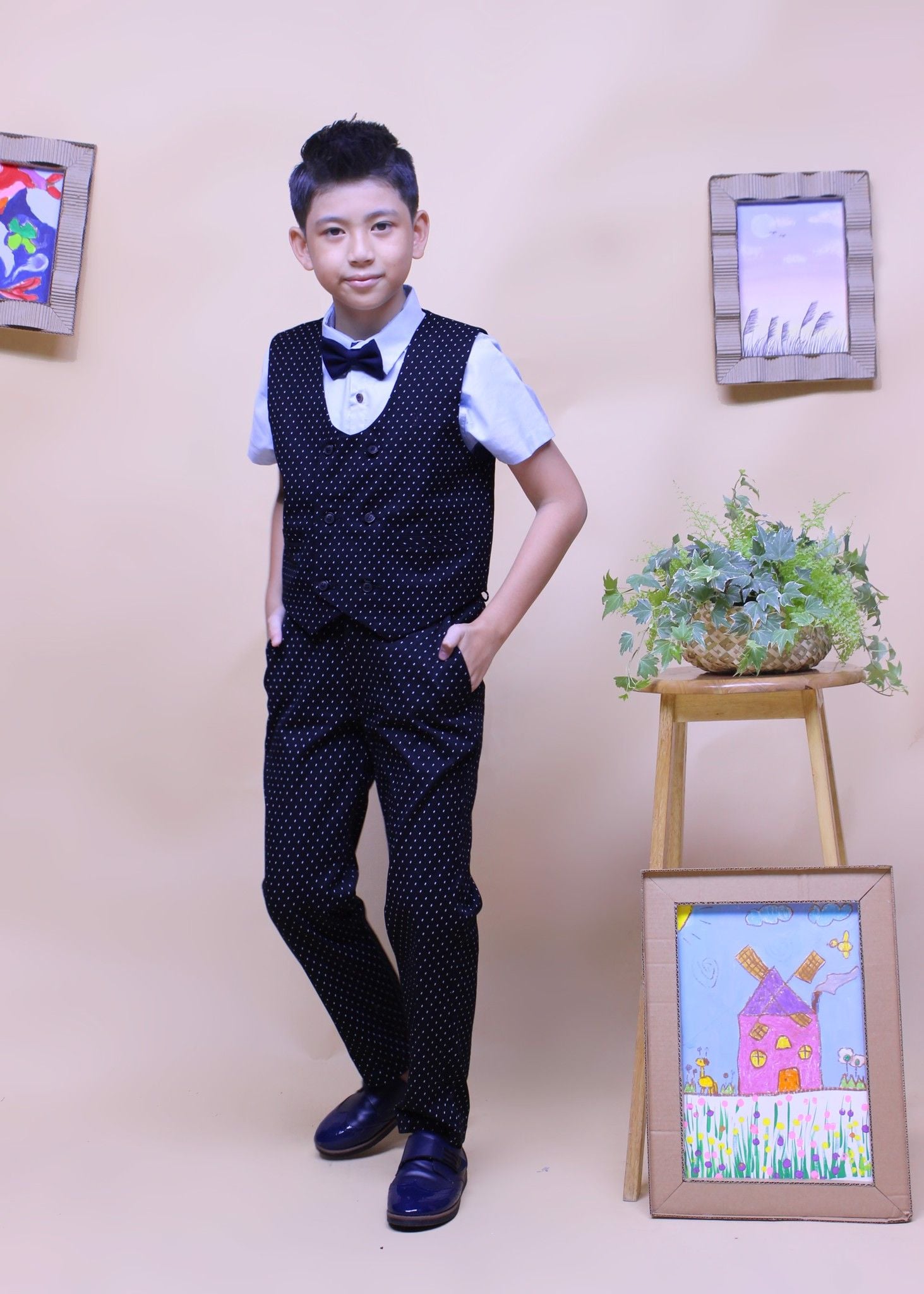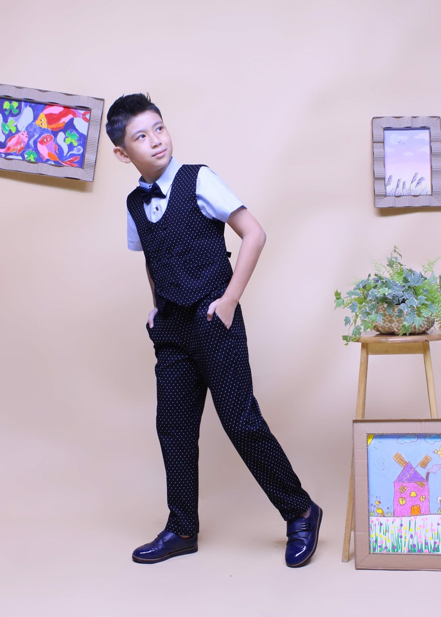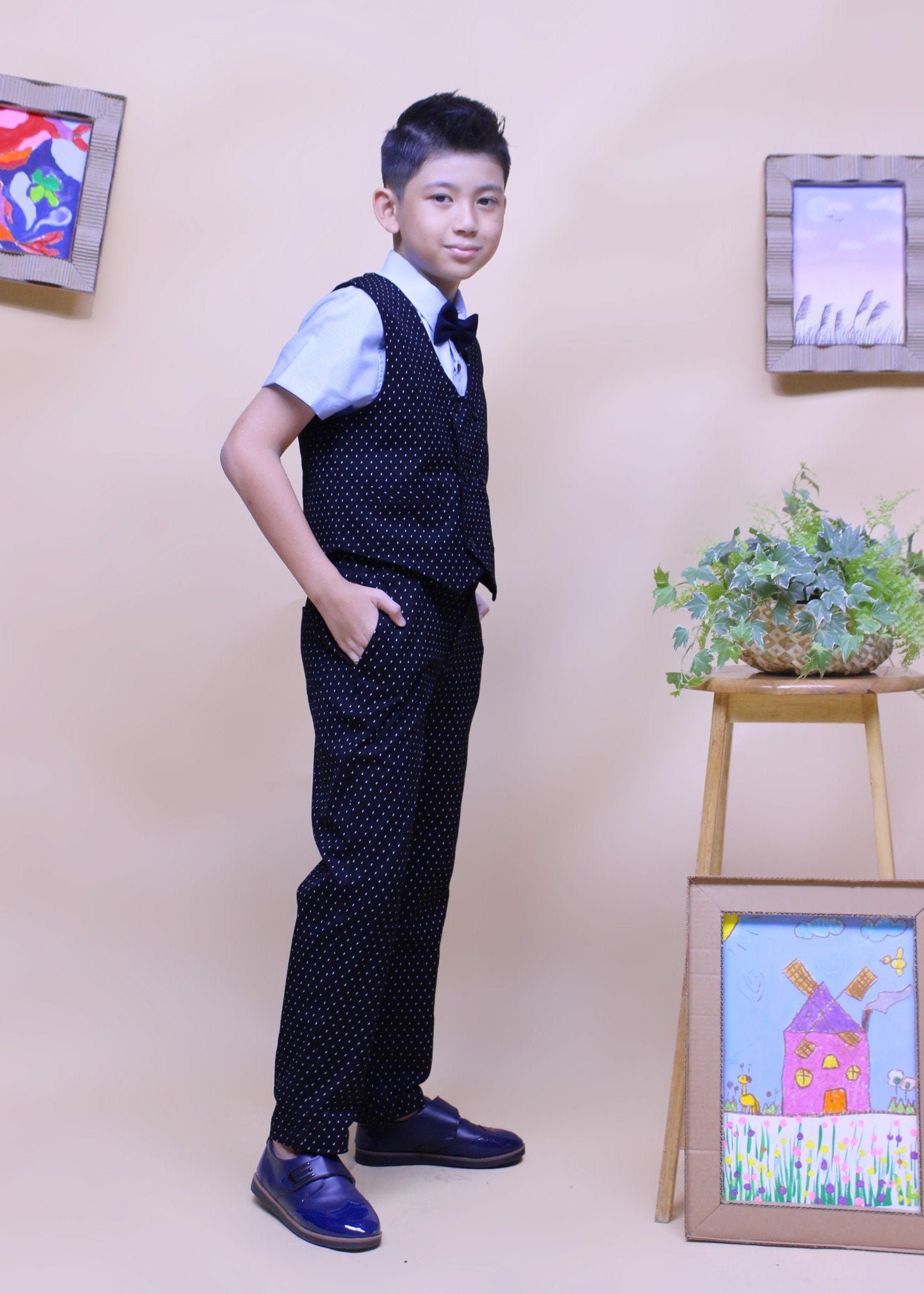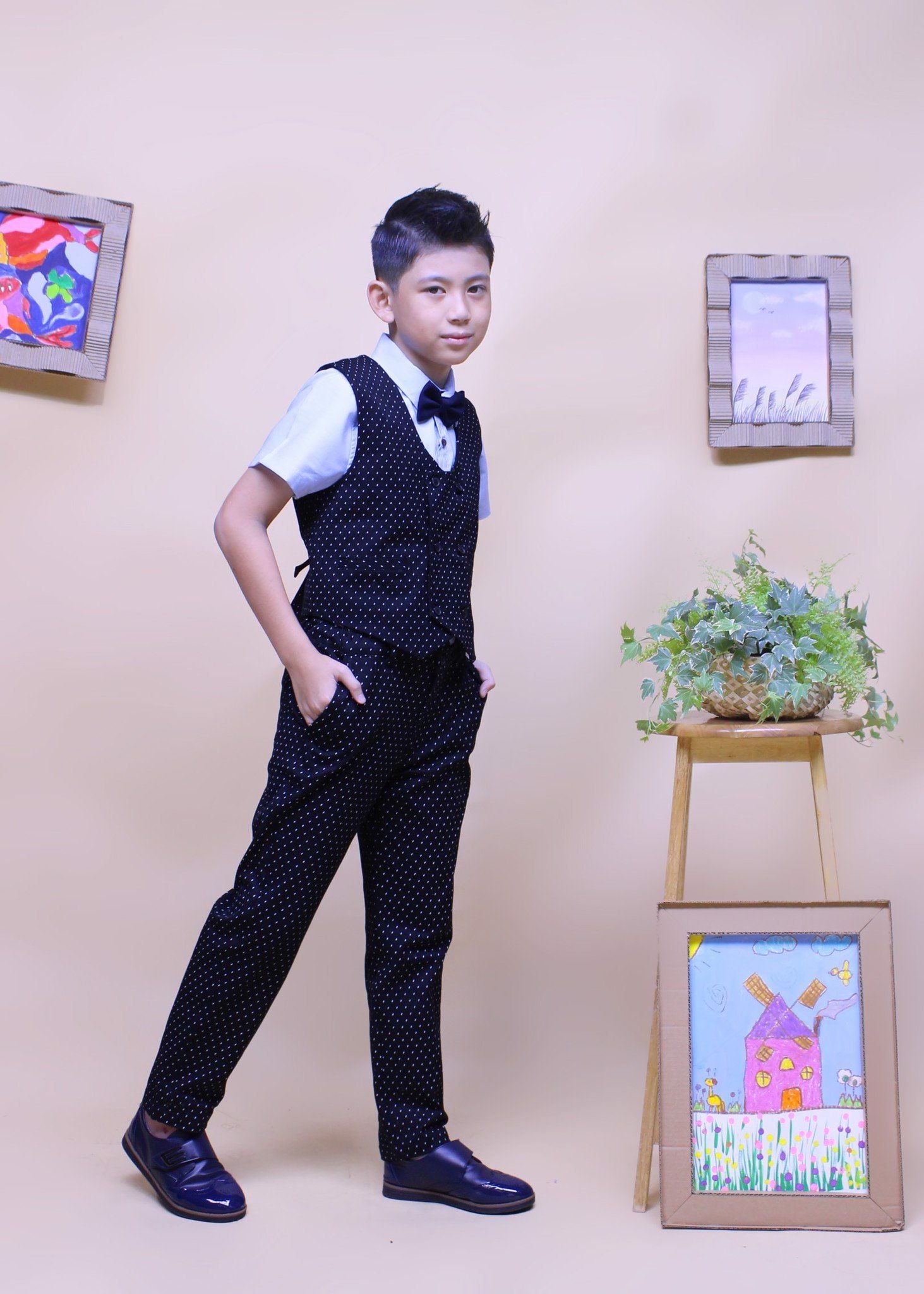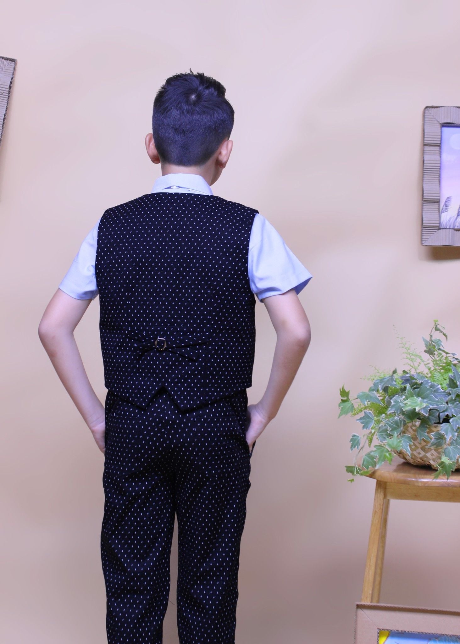 Áo gile bé trai hai hàng nút đen chấm - TAG011