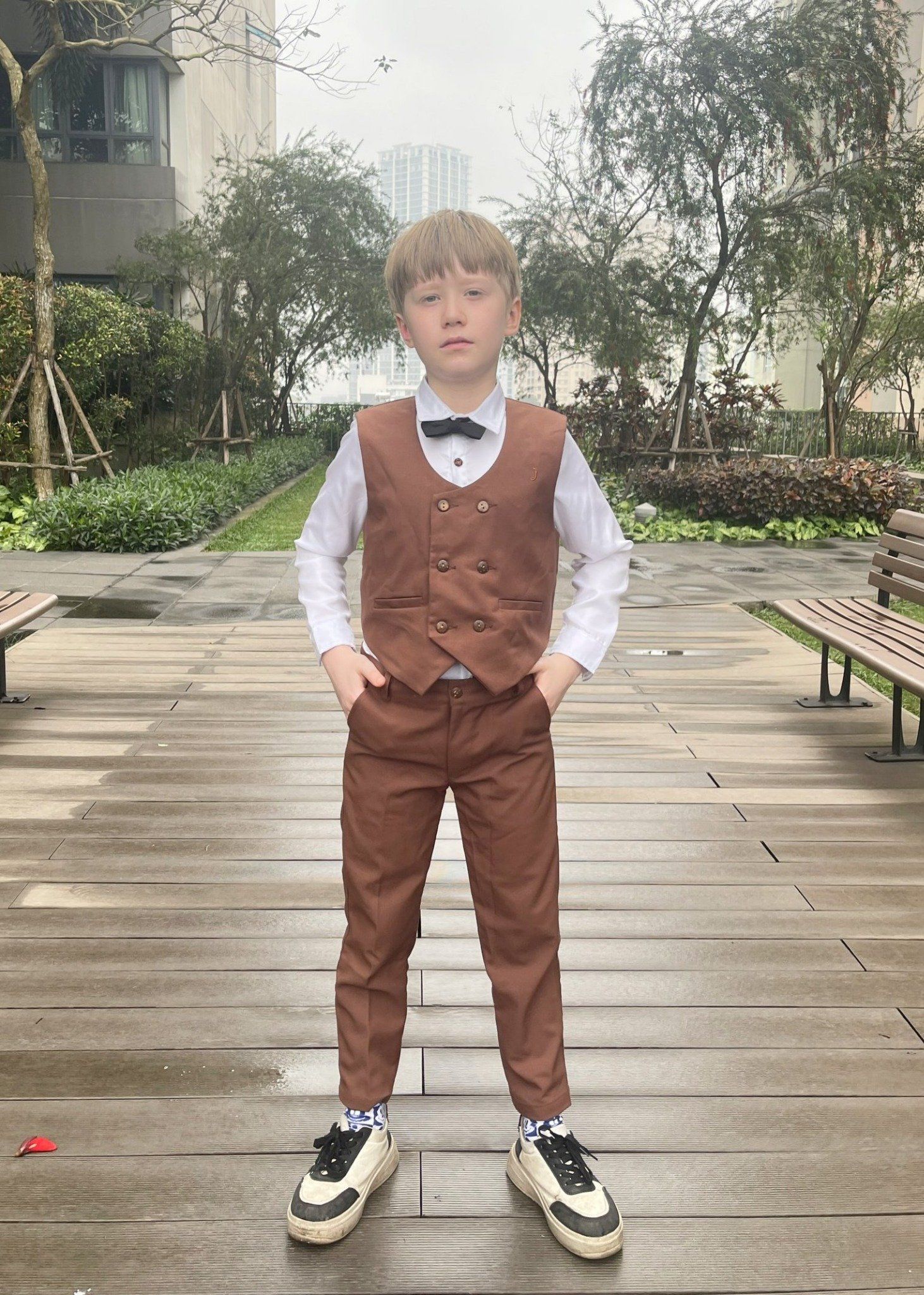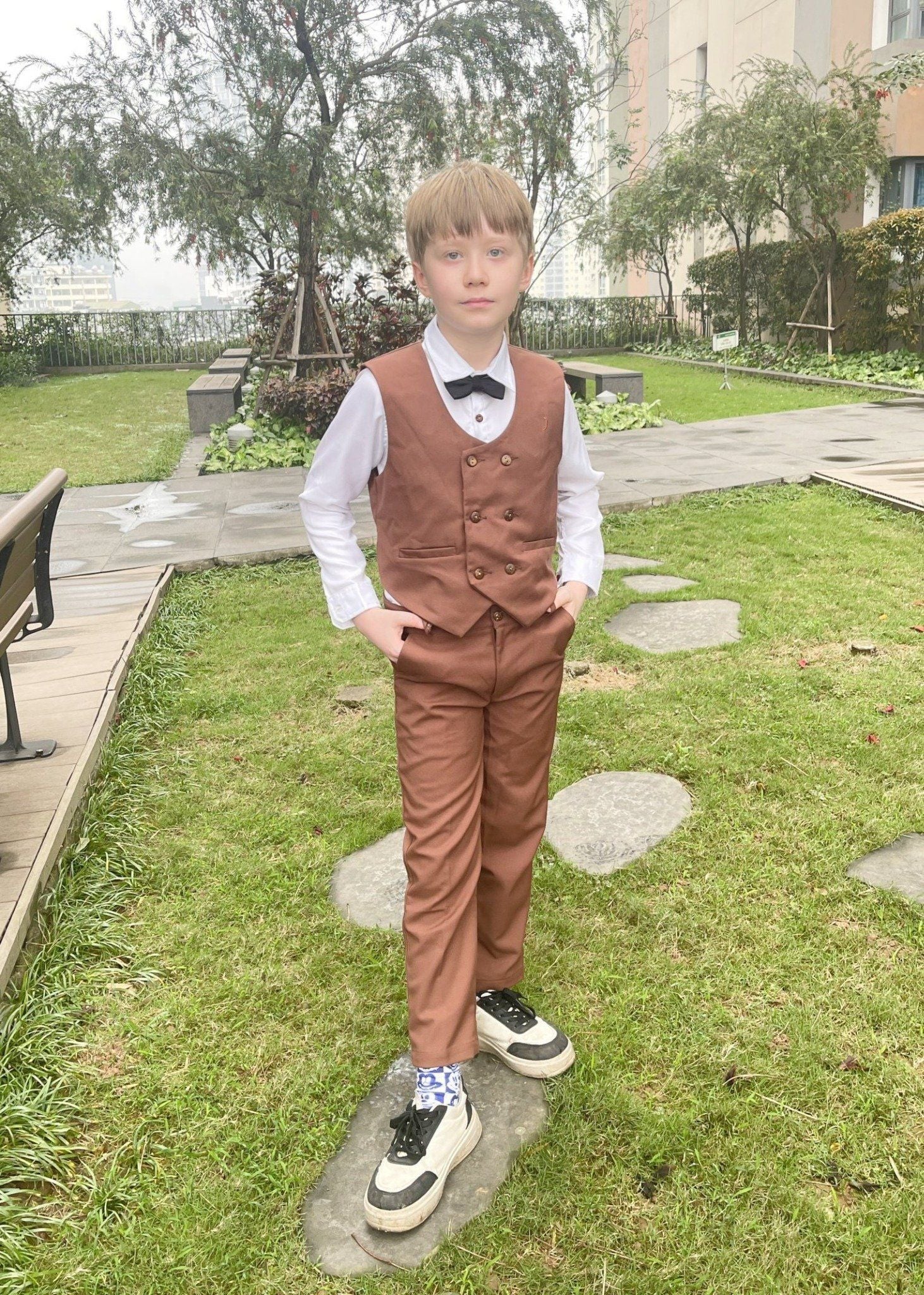 Áo gile hai hàng nút nâu - TAG017