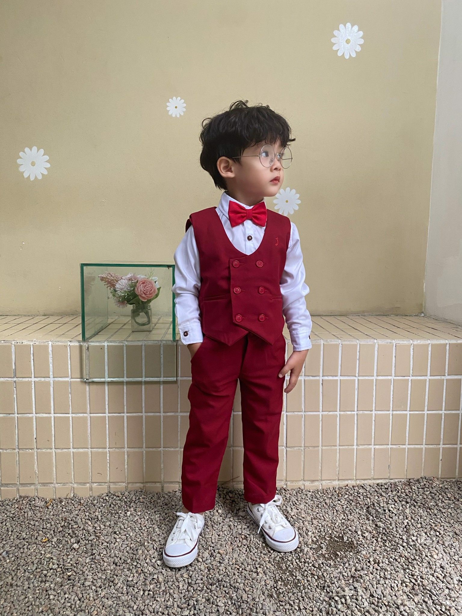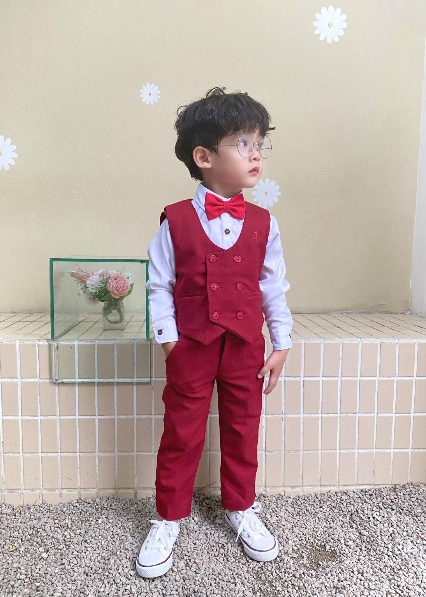 Áo gile hai hàng nút đỏ - TAG012