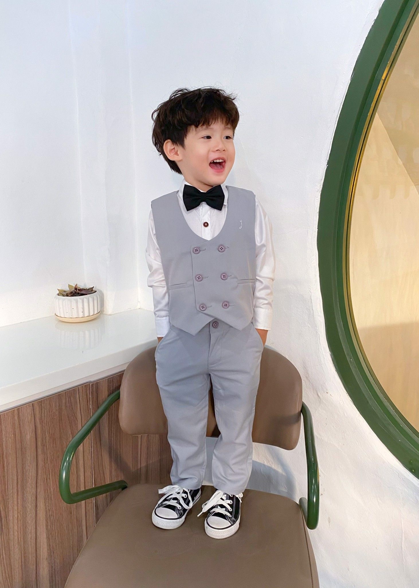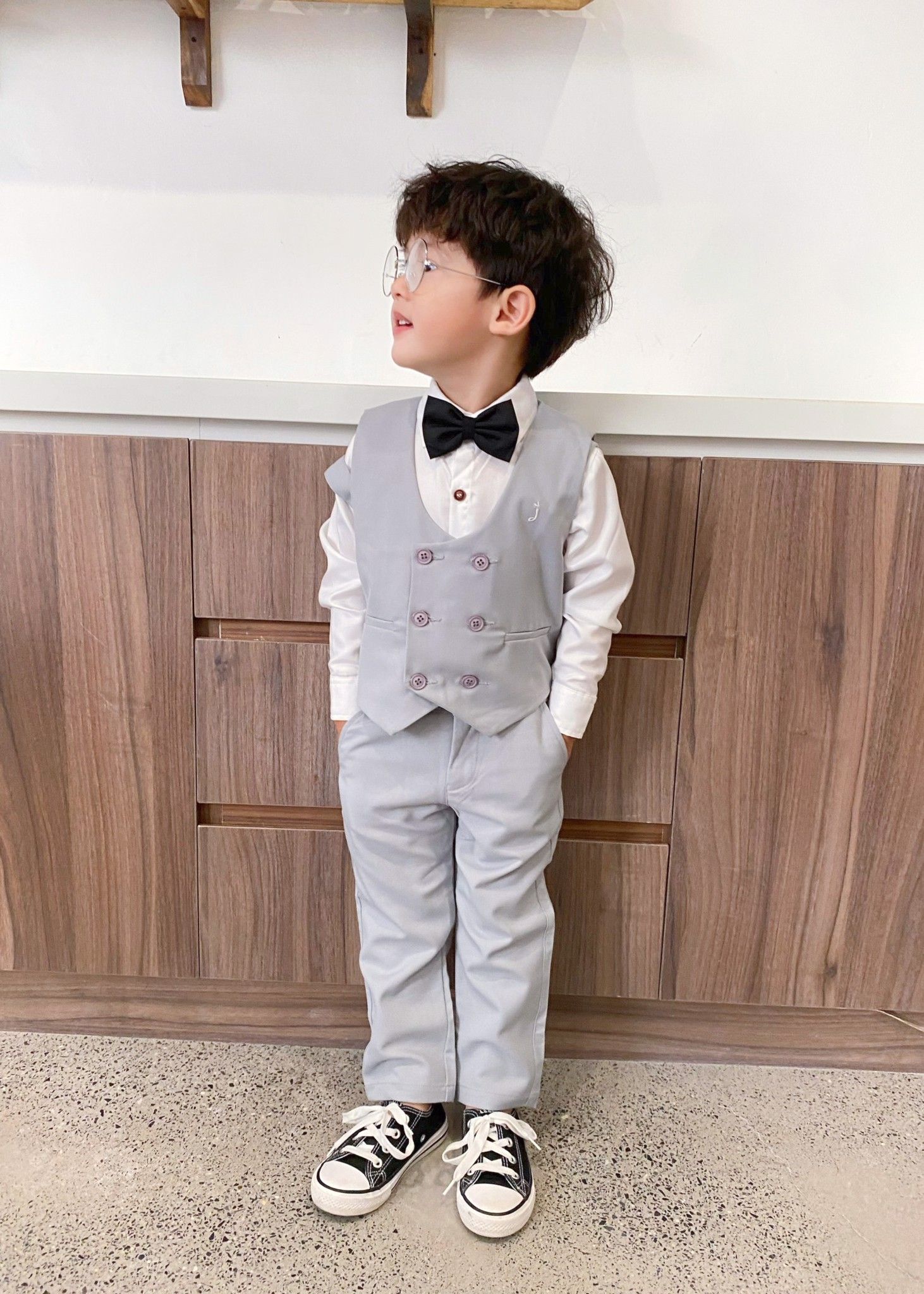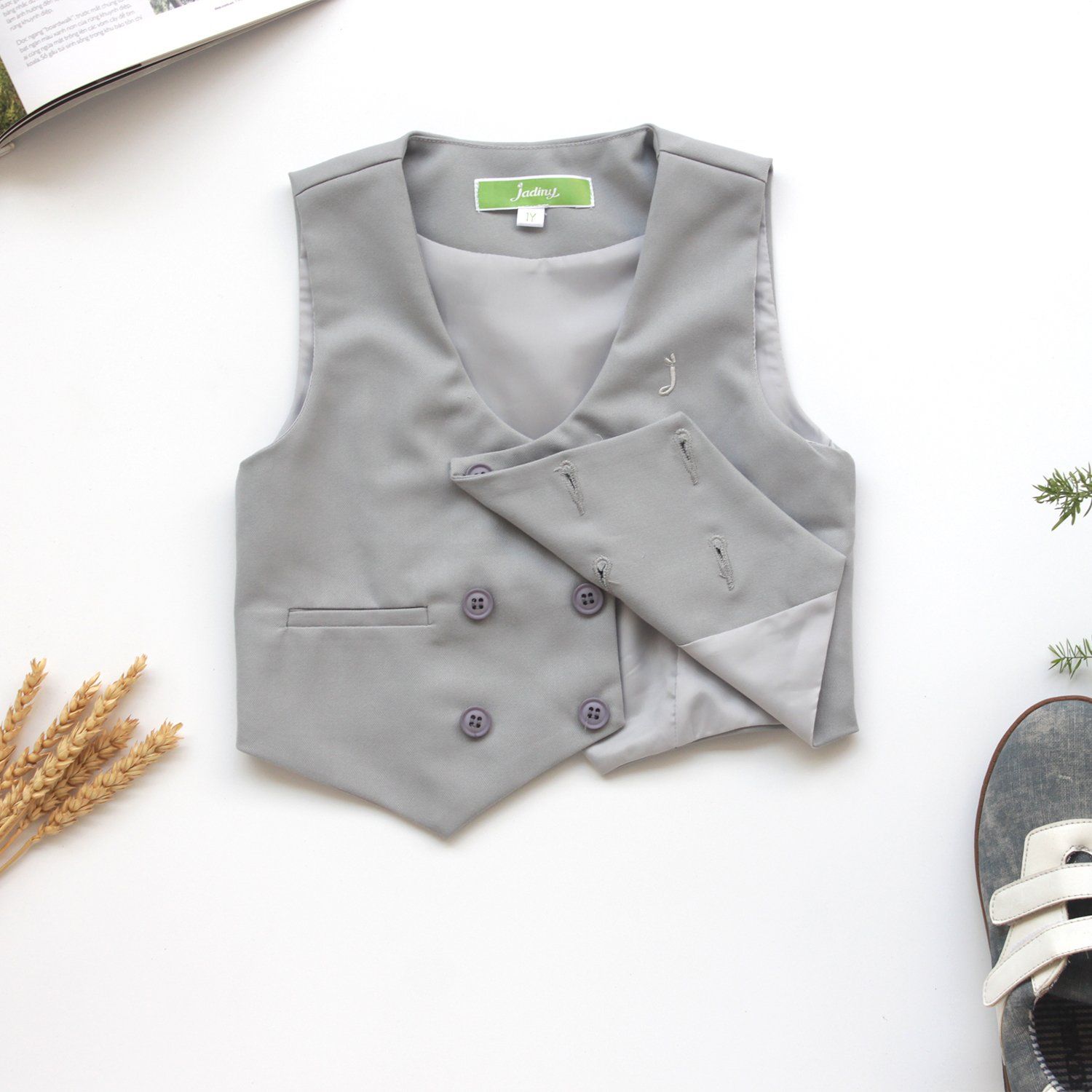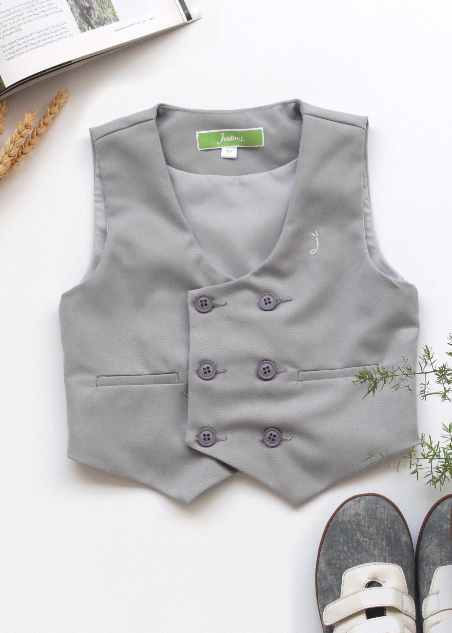 Áo gile hai hàng nút xám - TAG014