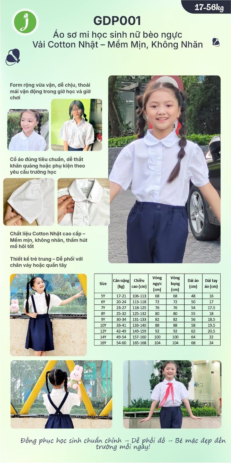 Áo sơ mi học sinh nữ bèo ngực - GDP001