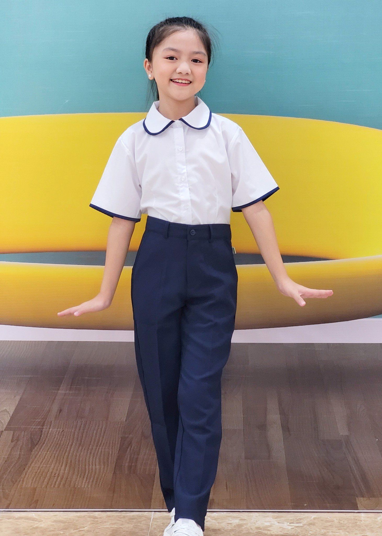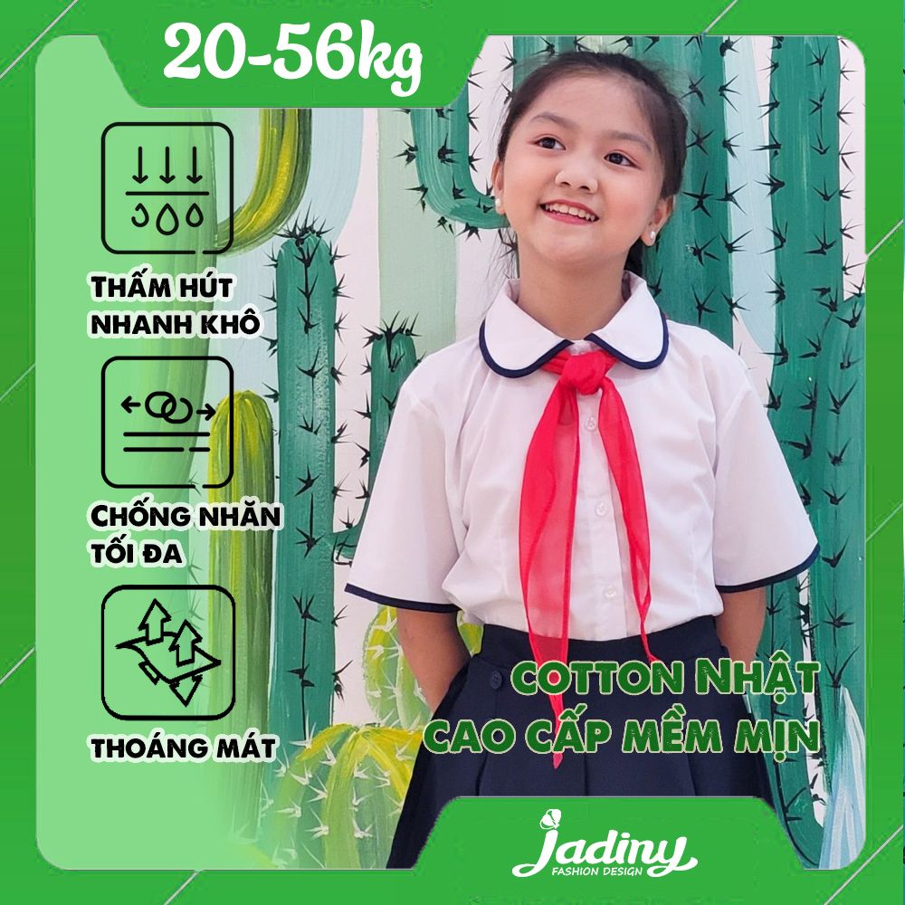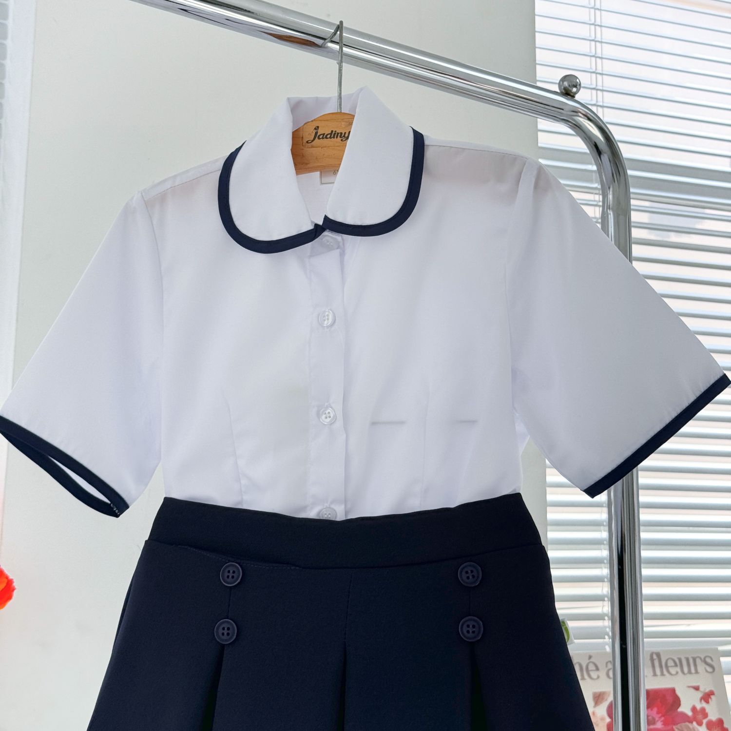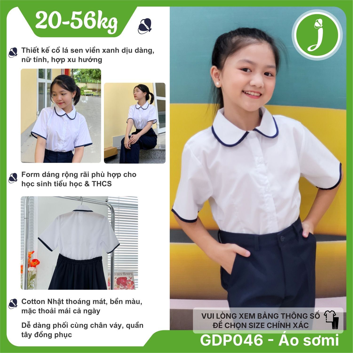 Áo sơmi học sinh nữ cổ lá sen viền xanh cotton thoáng mát - GDP046
