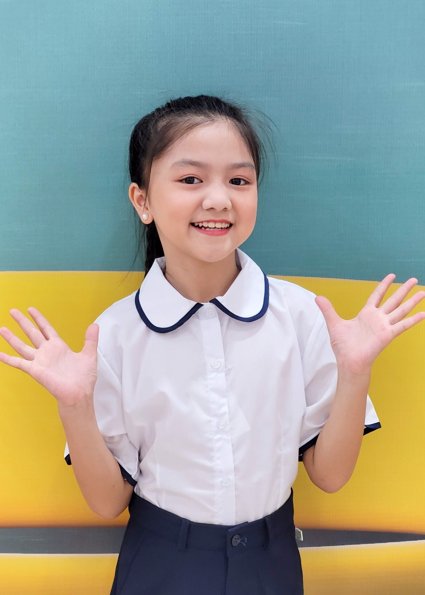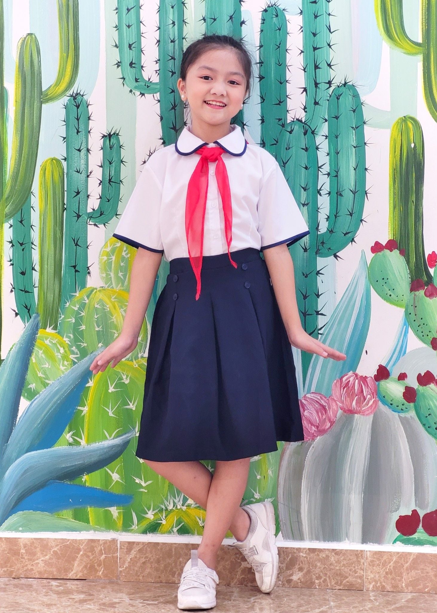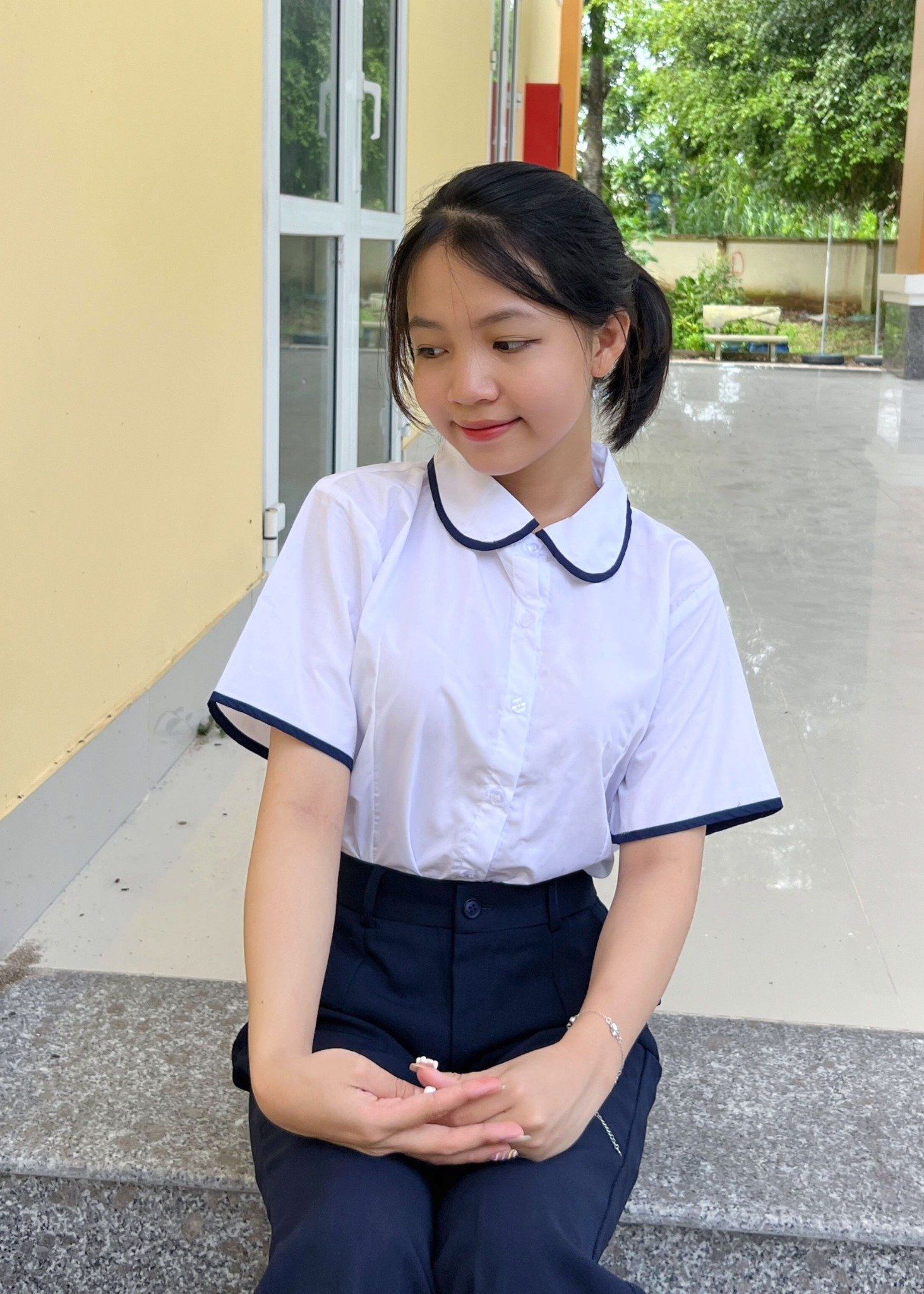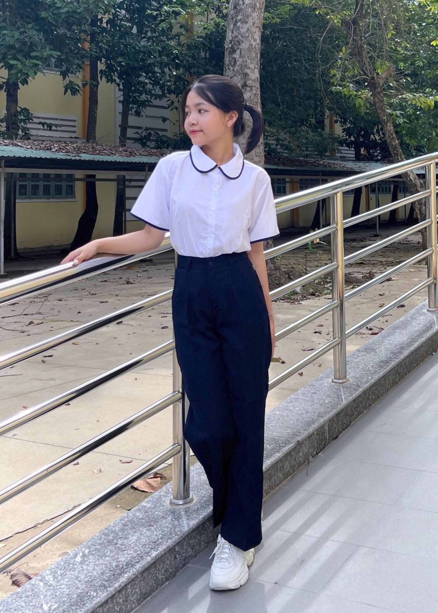 Áo sơmi học sinh nữ cổ lá sen viền xanh cotton thoáng mát - GDP046