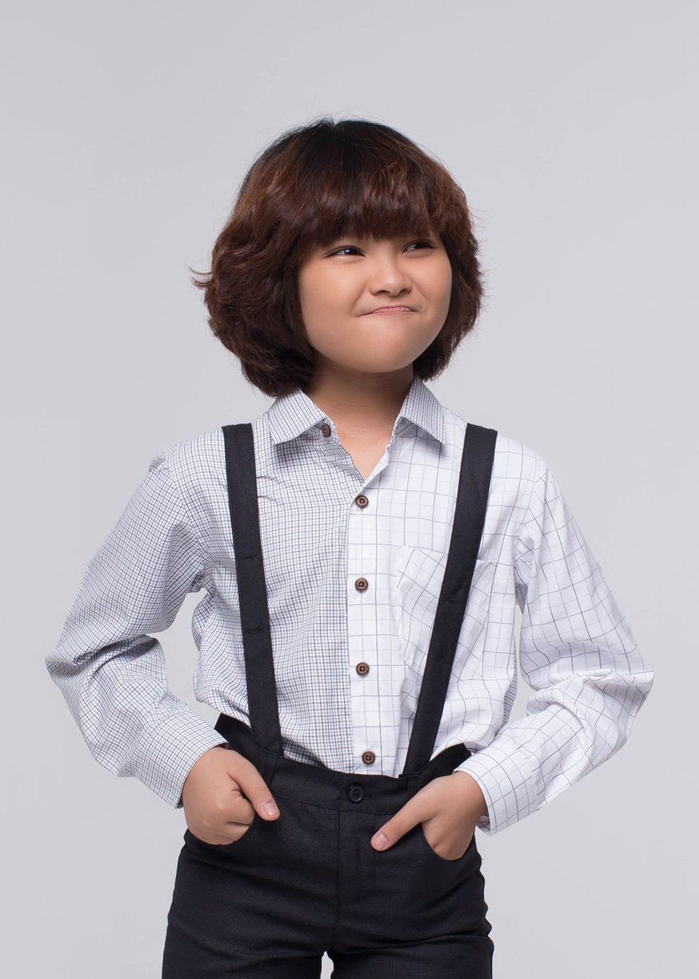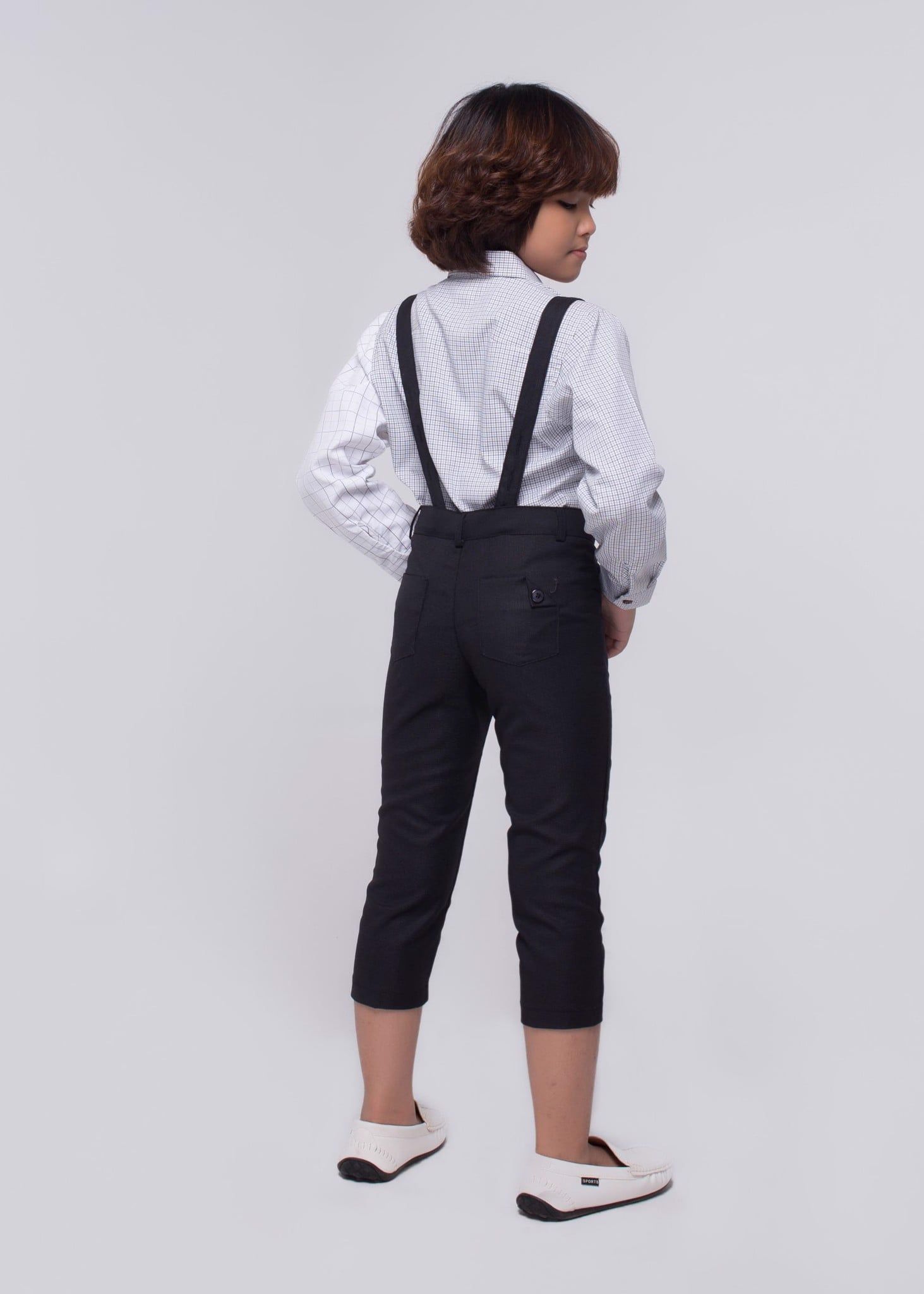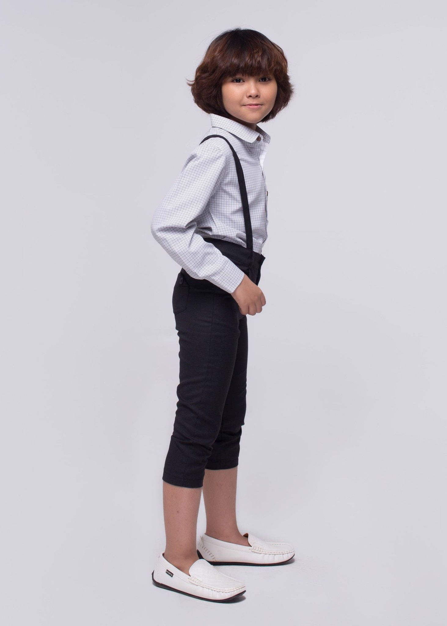 Áo sơmi bé trai viền tay dài caro trắng - AST100