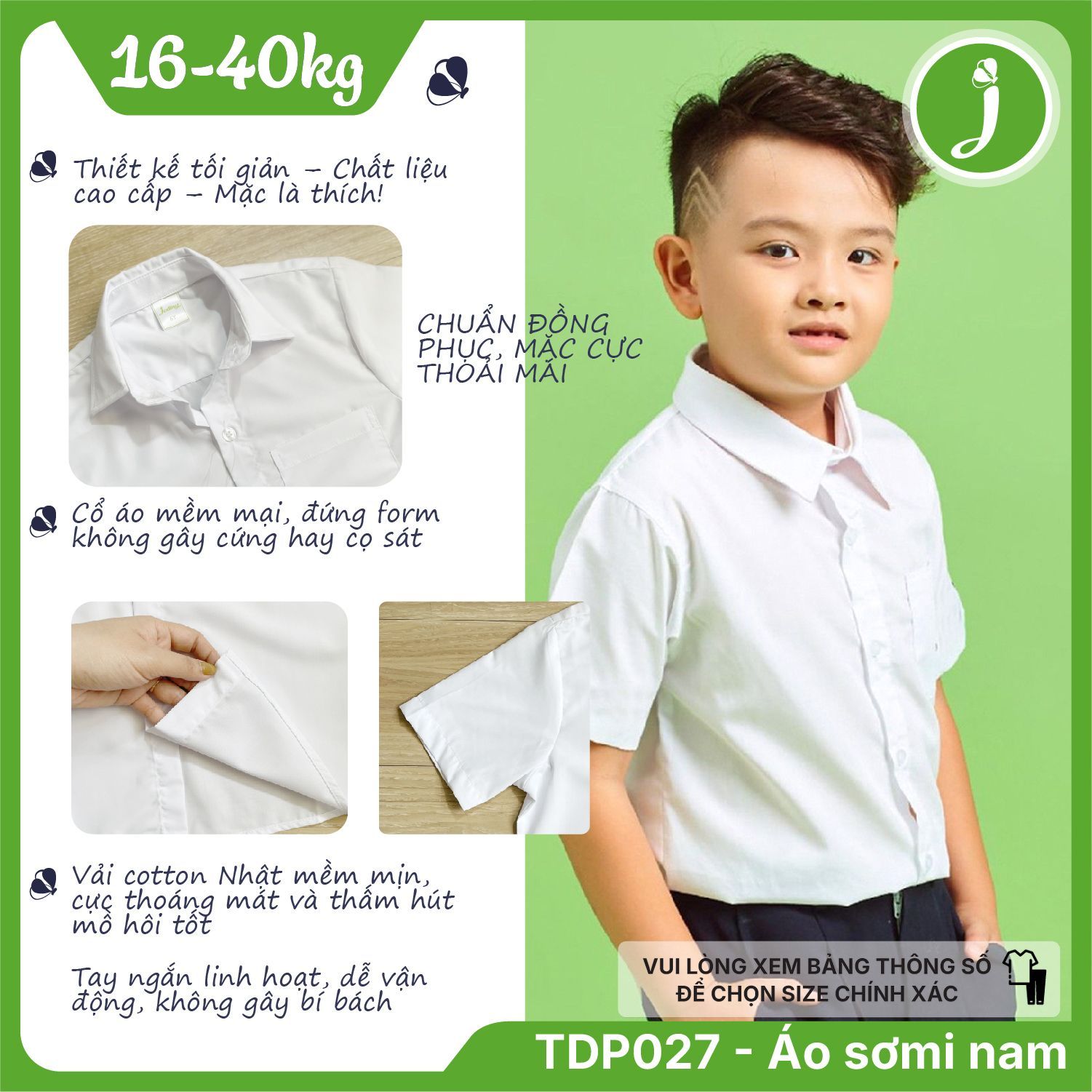 - Chất liệu : Áo sơ mi bé trai được may bằng chất liệu cotton Nhật cao cấp mềm mịn, thoáng mát, bền và ít nhăn.