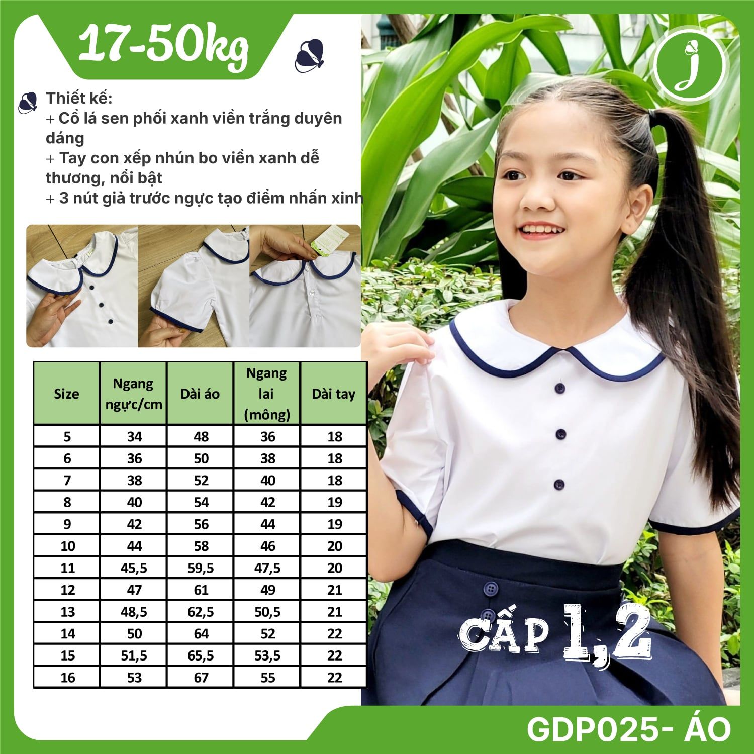 Áo sơ mi học sinh nữ cổ lá sen phối viền - GDP025