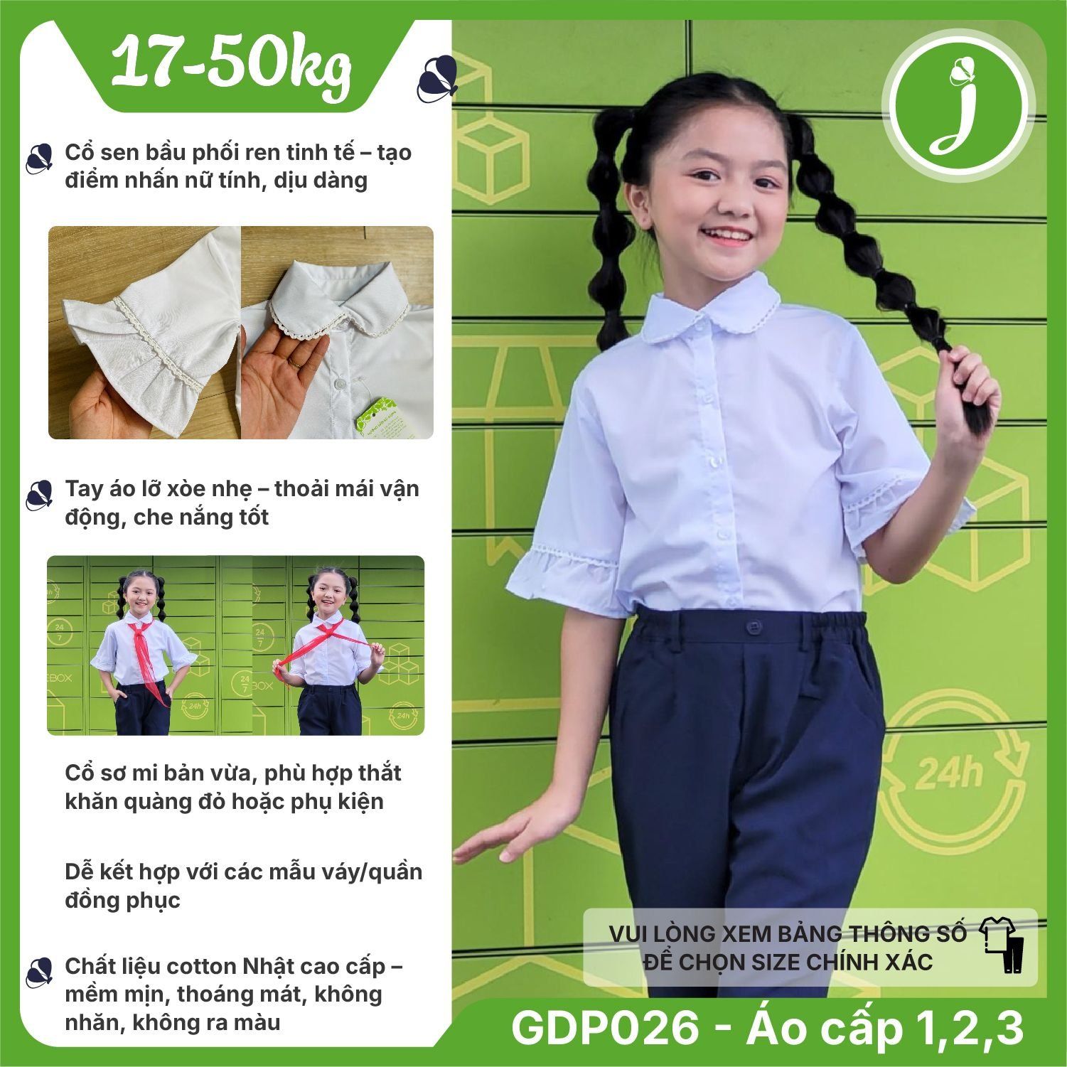 Áo sơ mi học sinh nữ cổ sen phối ren tay xòe - GDP026