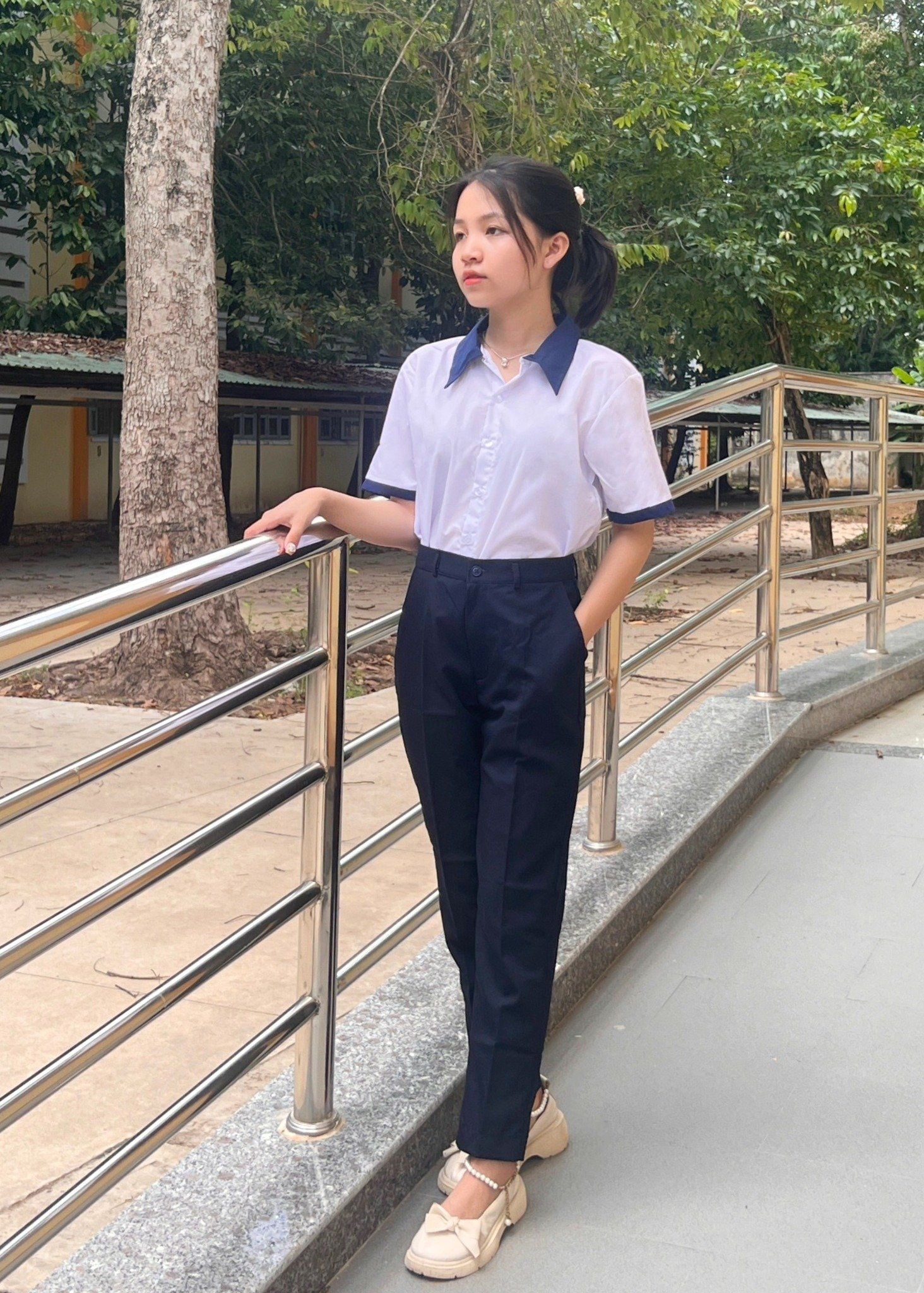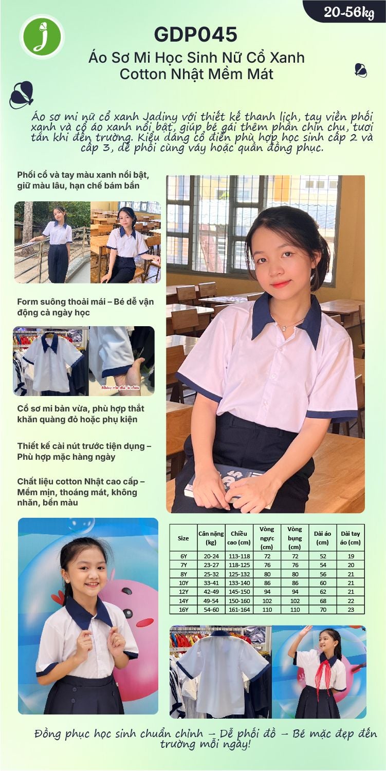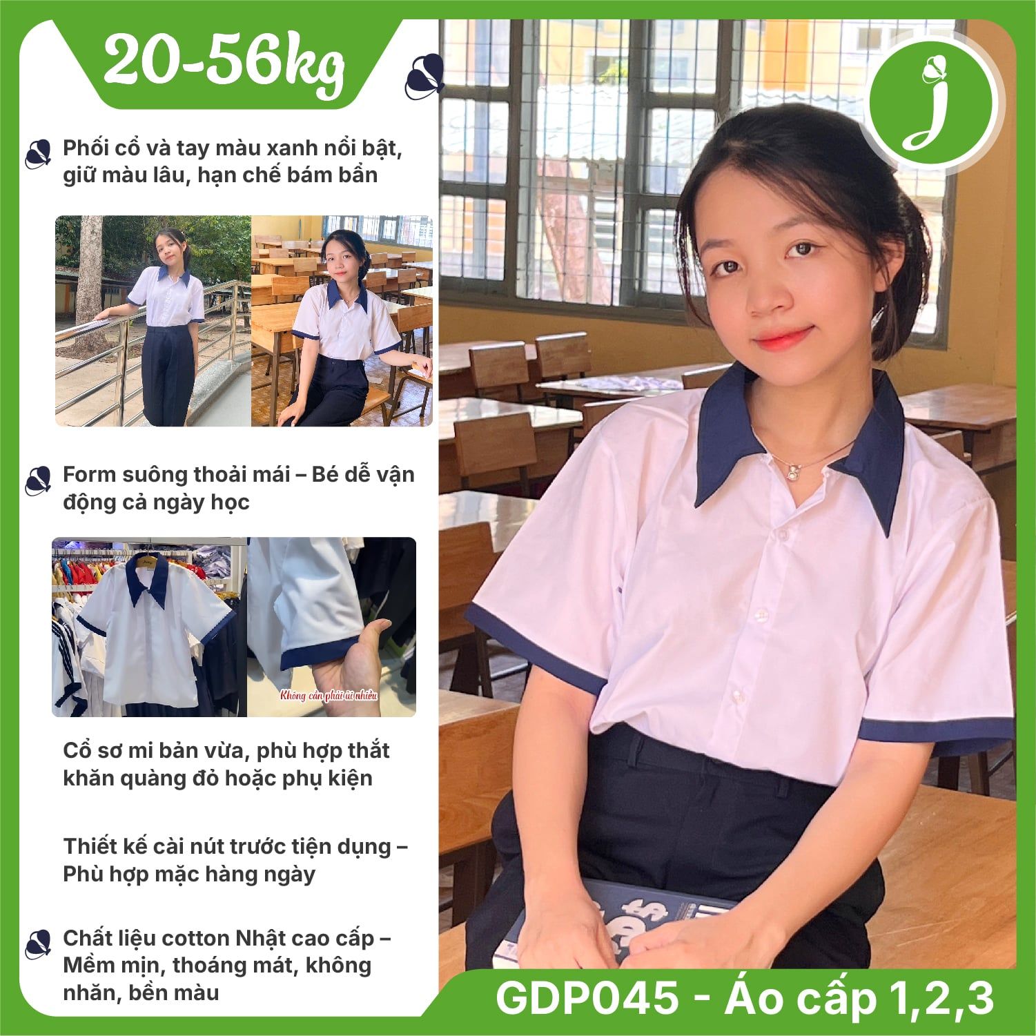 Áo sơ mi học sinh nữ cổ xanh cotton thoáng mát - GDP045
