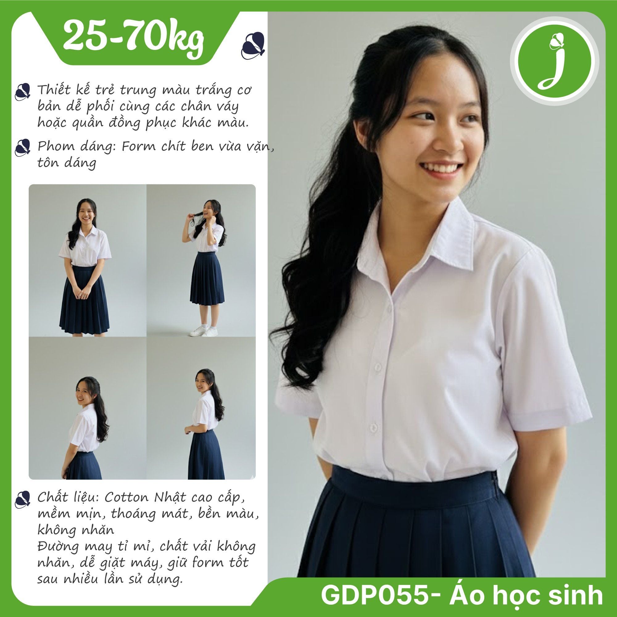 Áo sơ mi đồng phục học sinh nữ tay xuông - GDP055