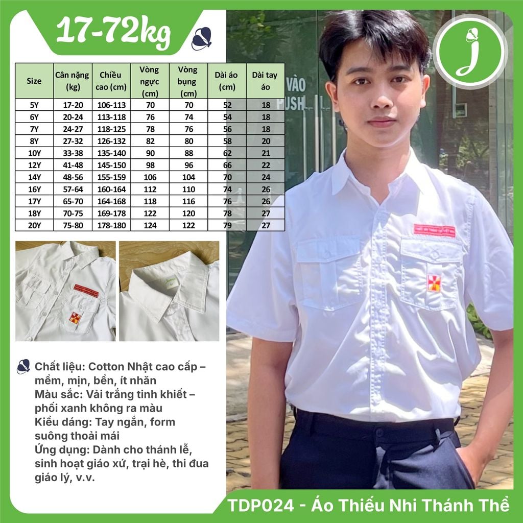 Áo thiếu nhi Thánh thể nam nữ cho thiếu nhi và huynh trưởng Công Giáo - TDP024