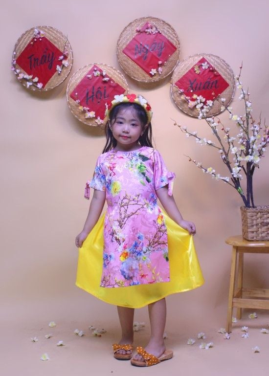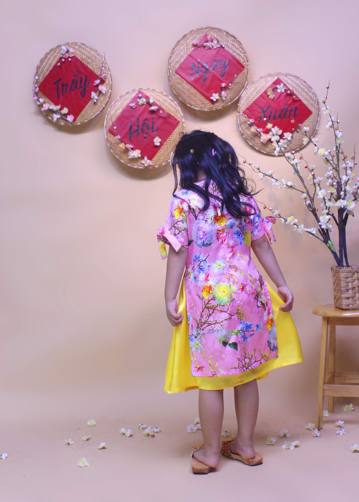 Bộ áo dài hoa xuân khoe sắc hồng - GAD012