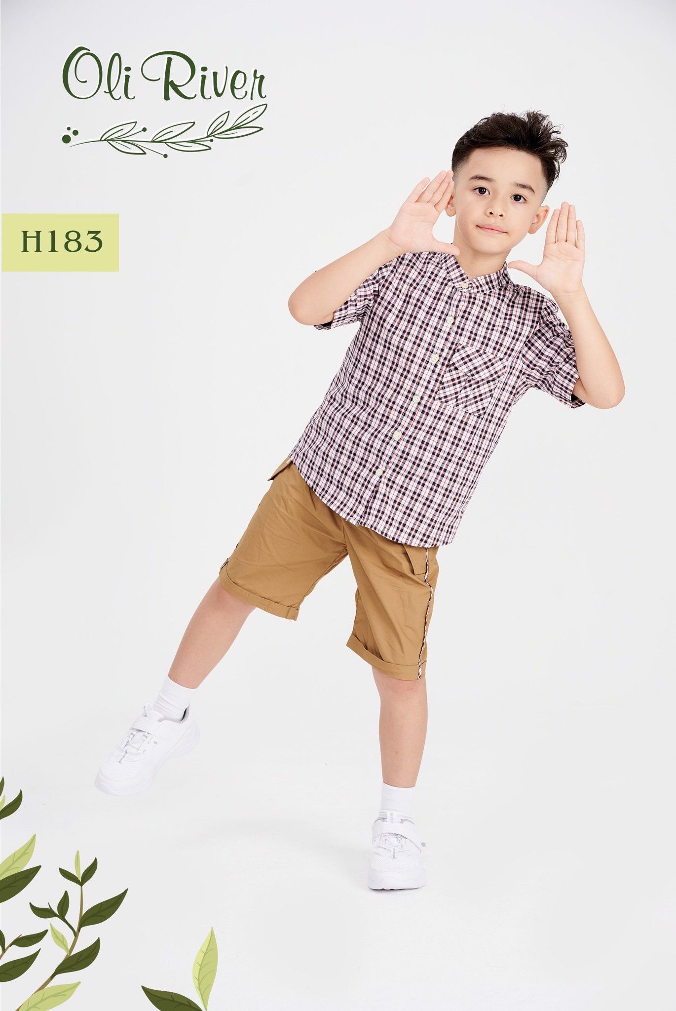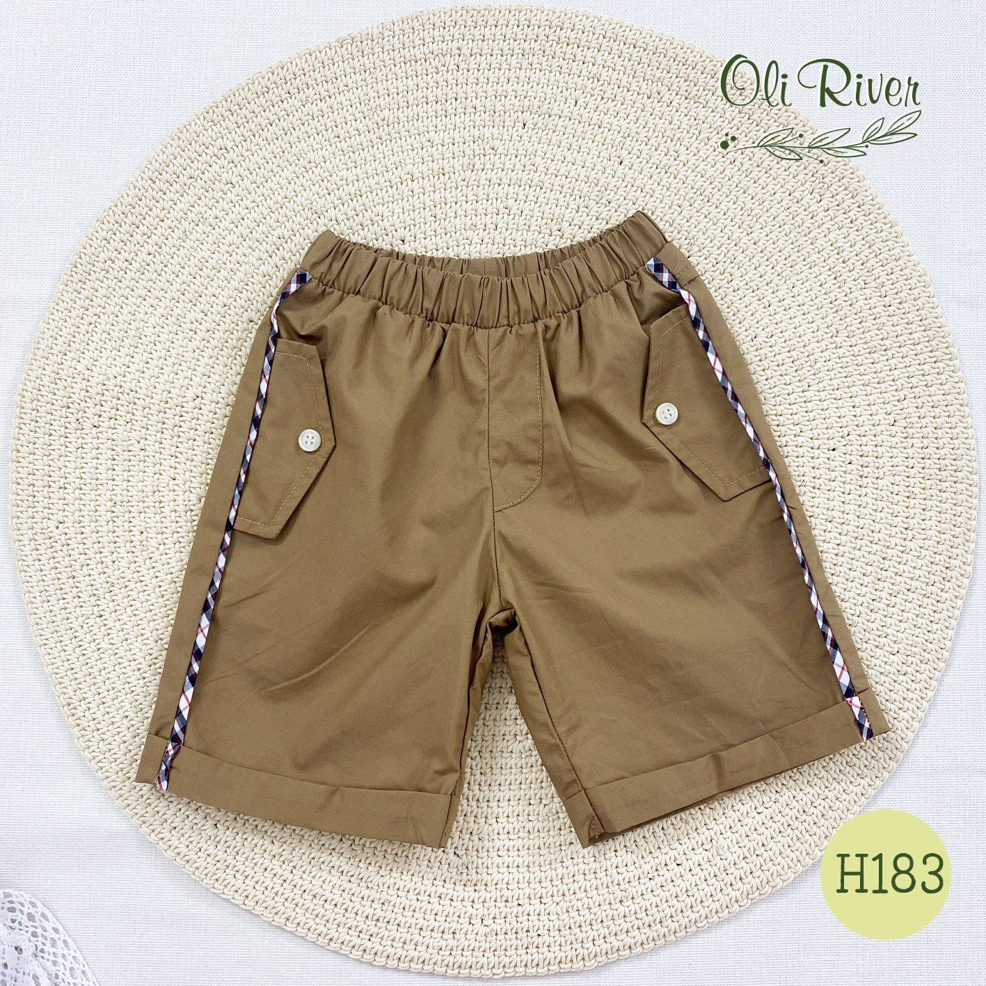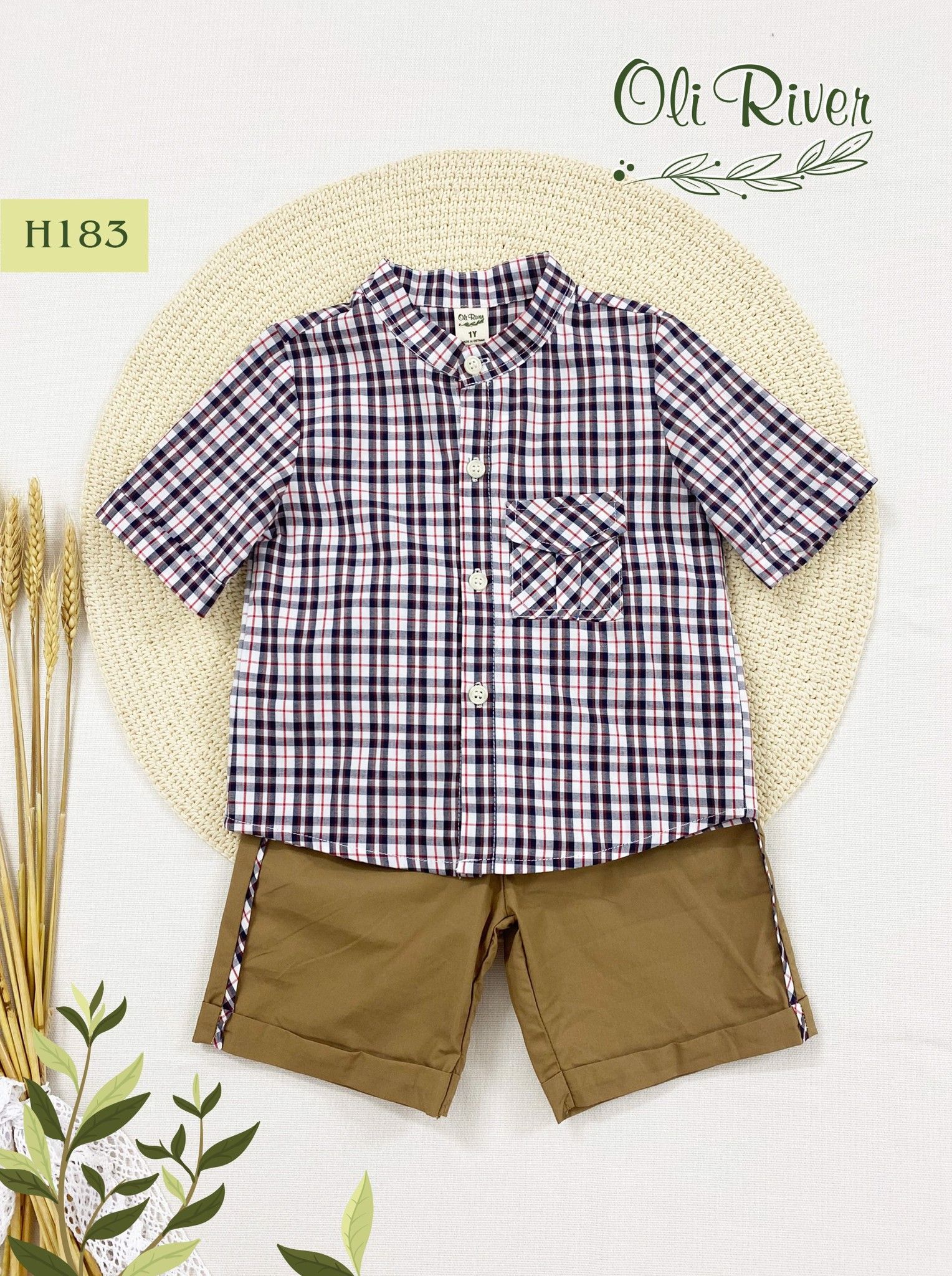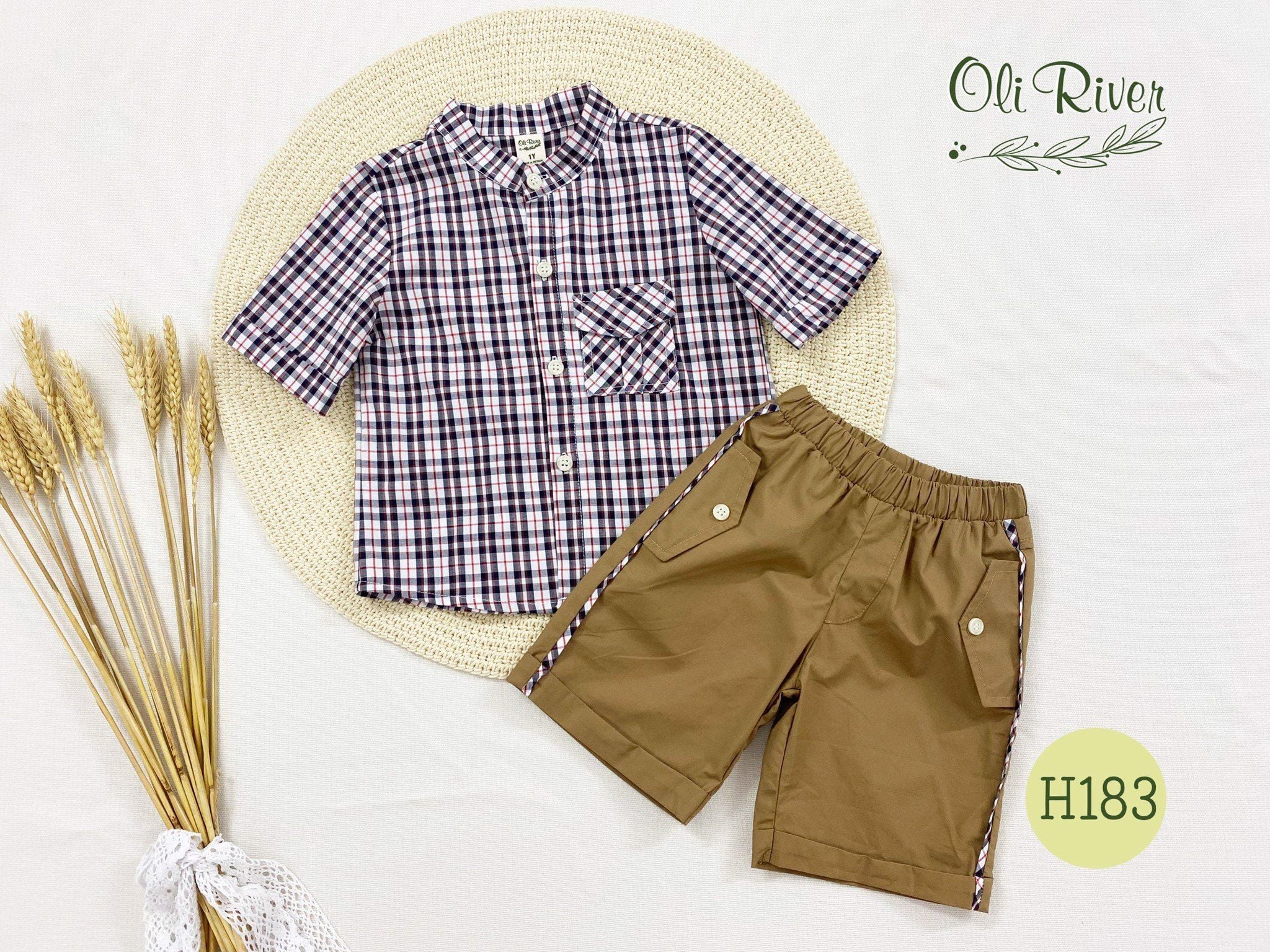 Bộ áo kẻ ô phối quần nâu bé trai oli river H183-1 - OBT063