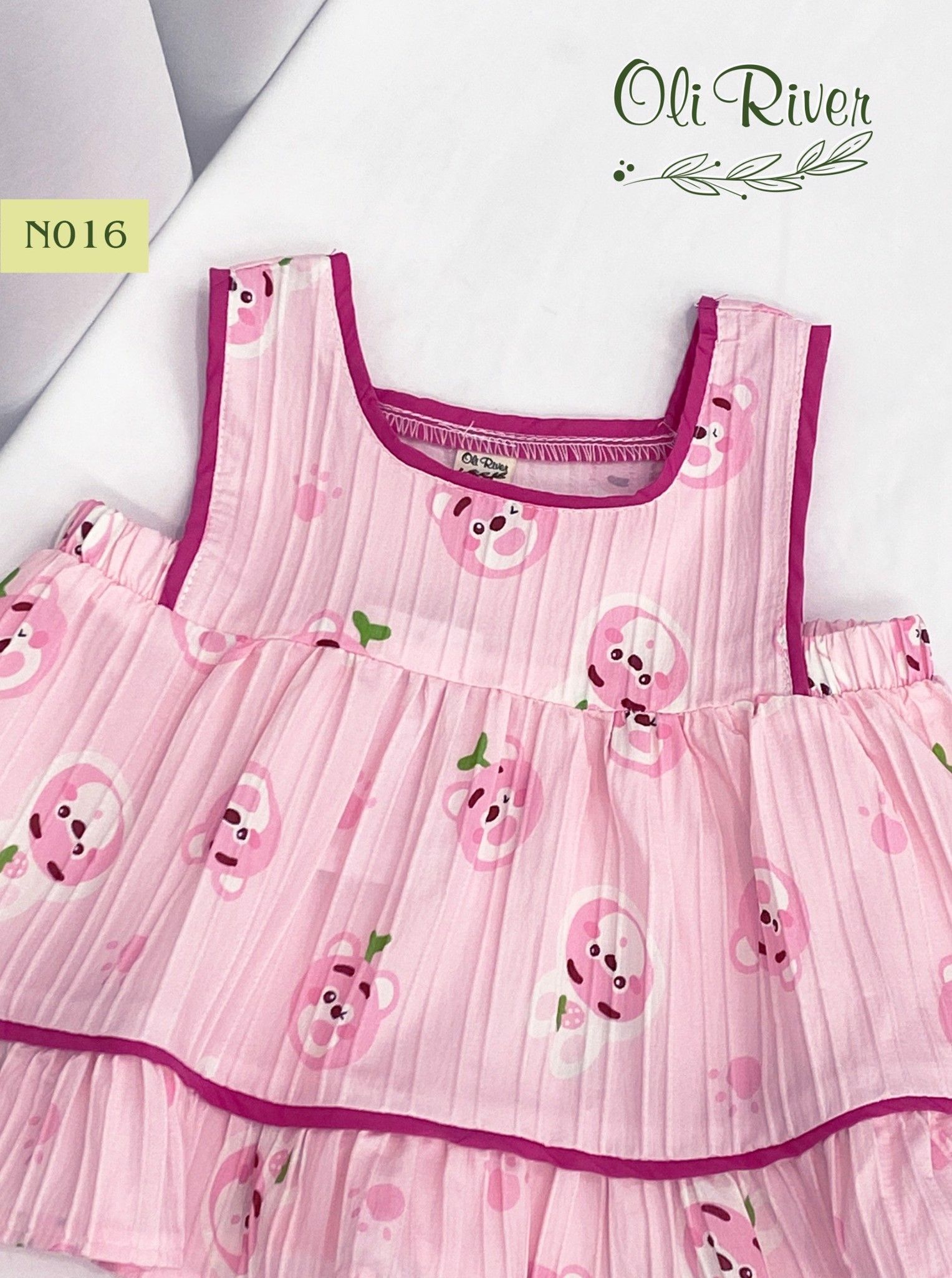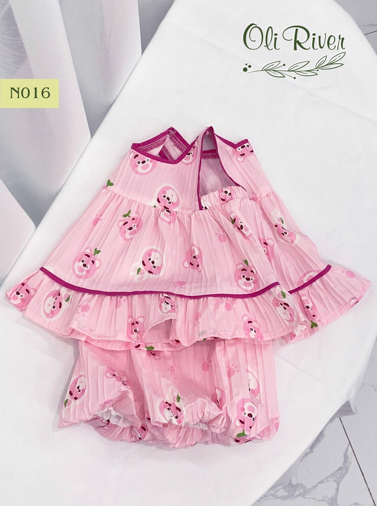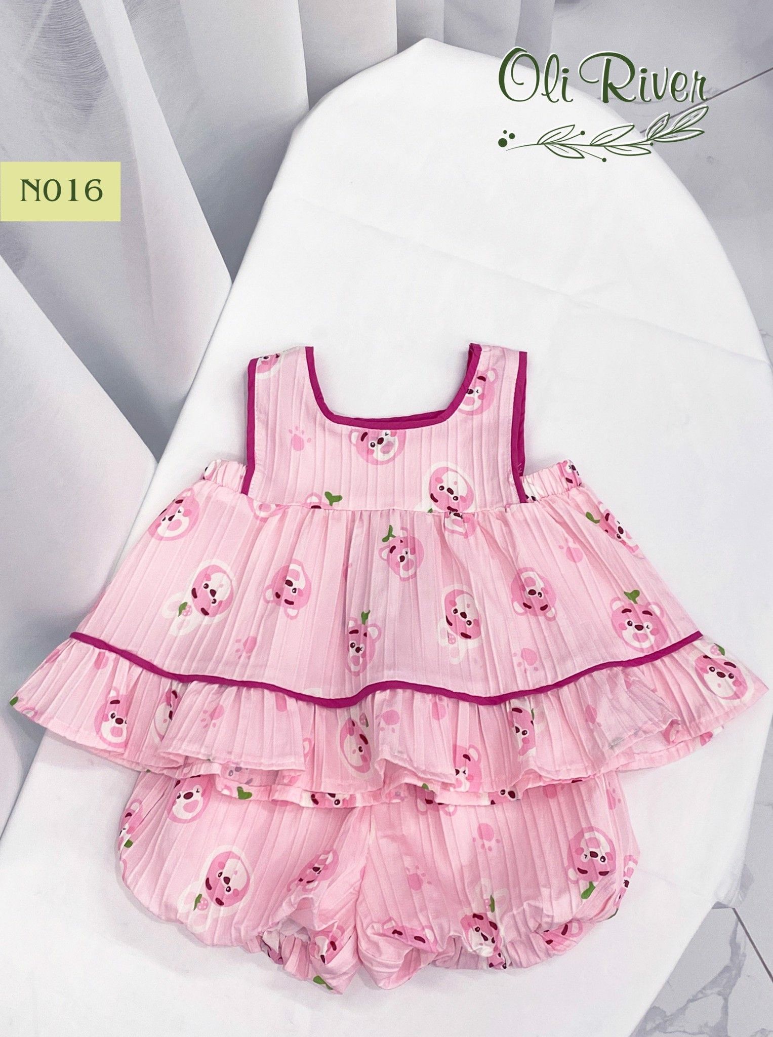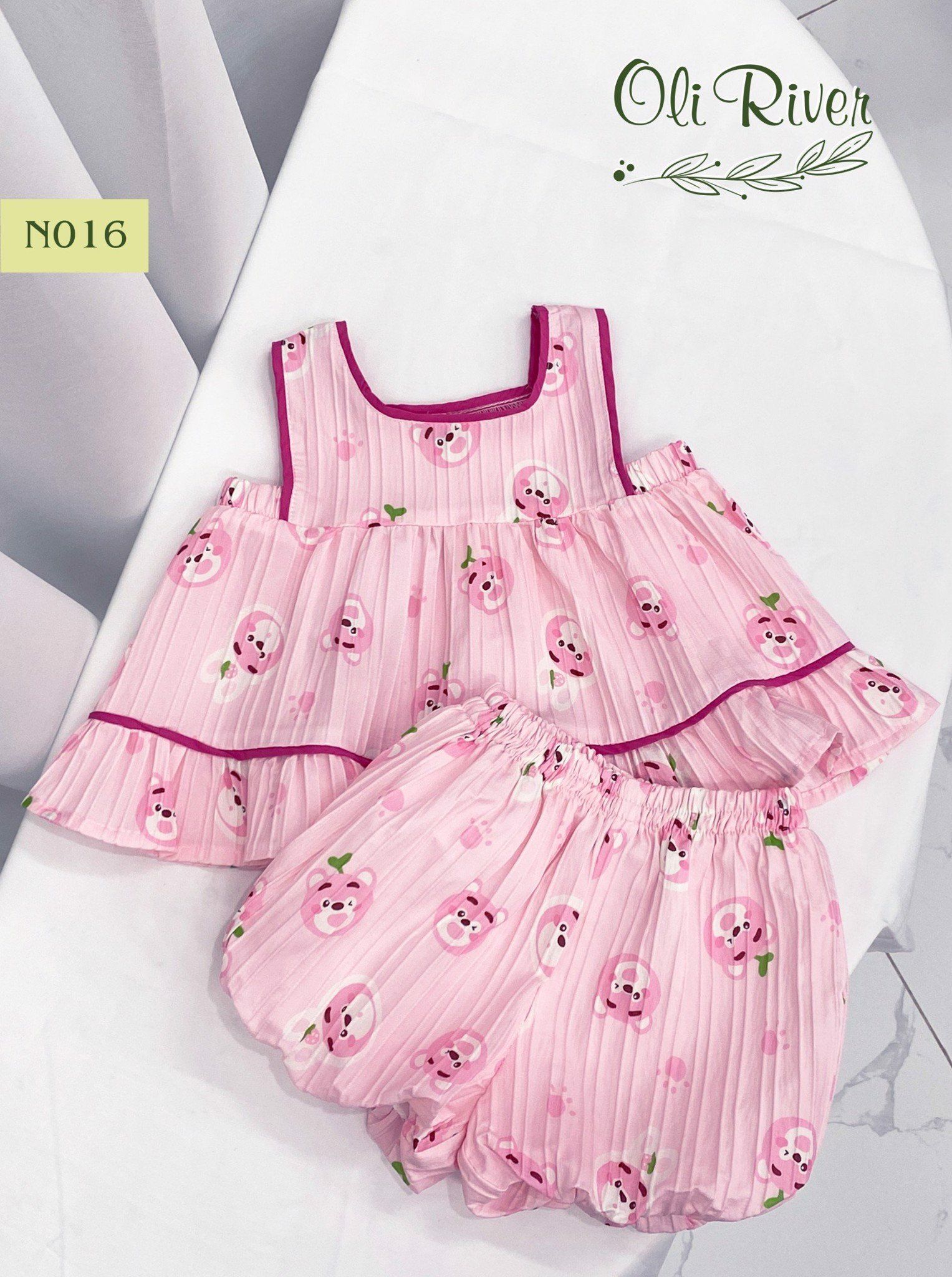 Bộ bé gái hình gấu dâu hồng sen N016 - ODB234