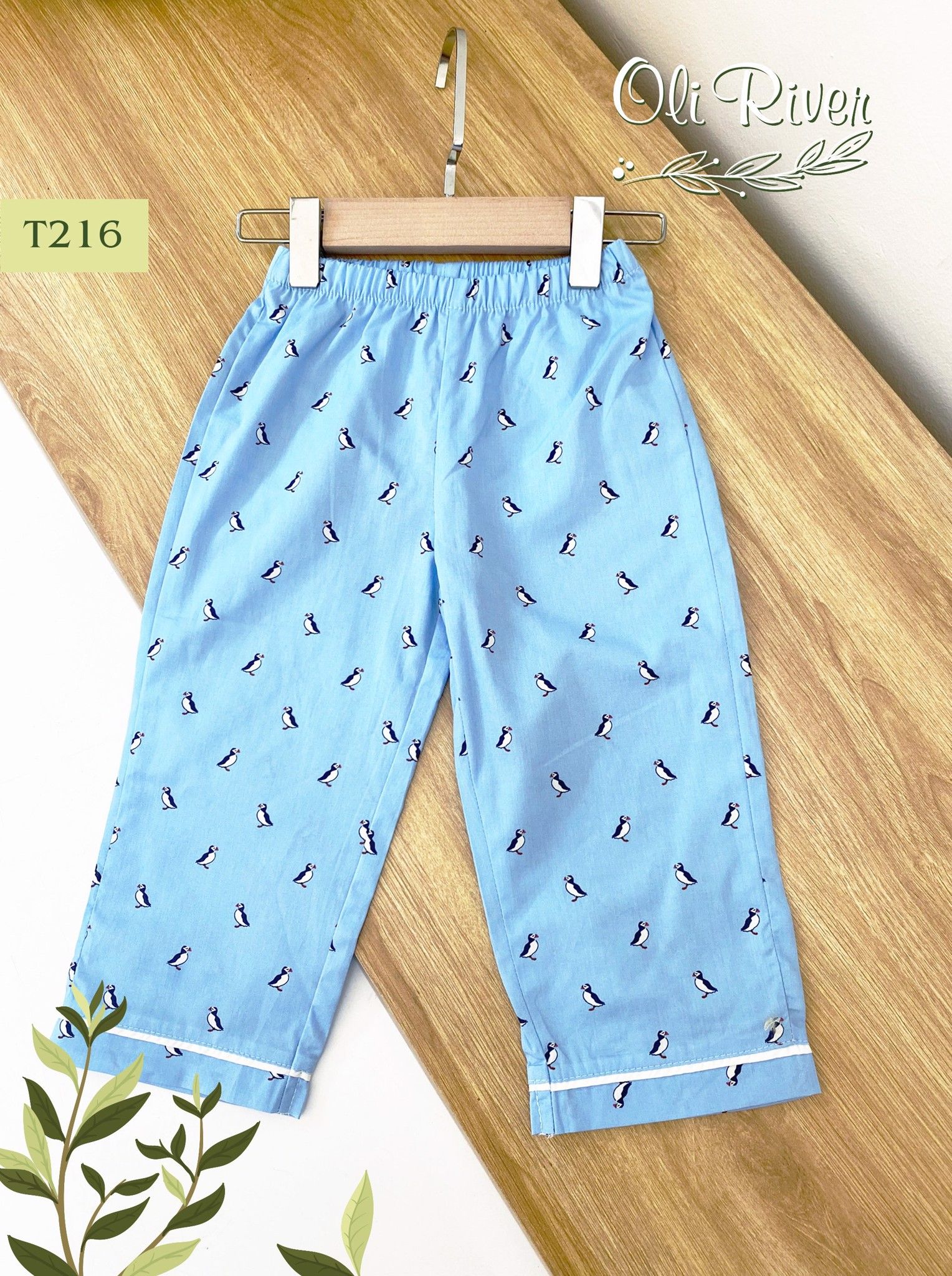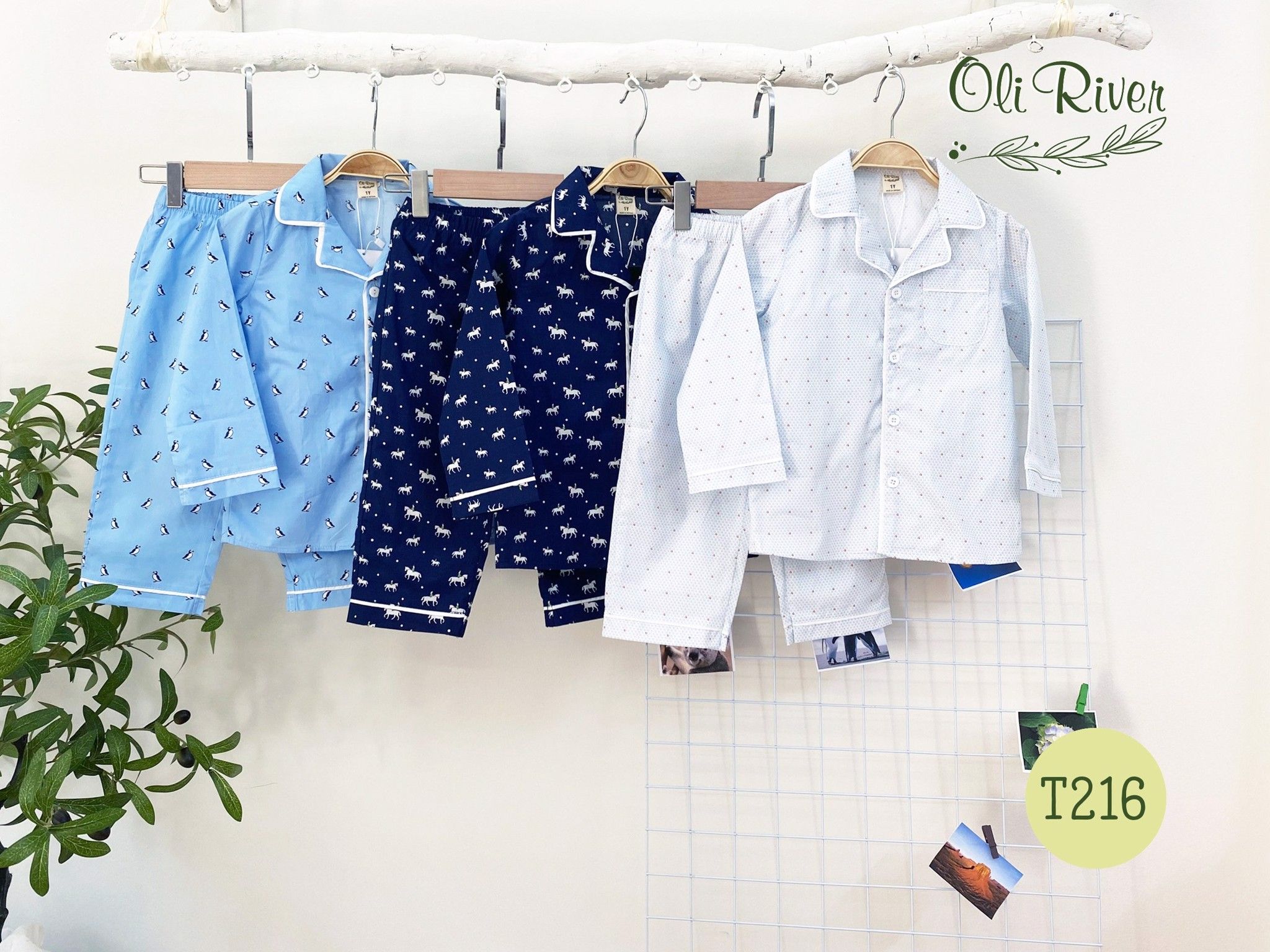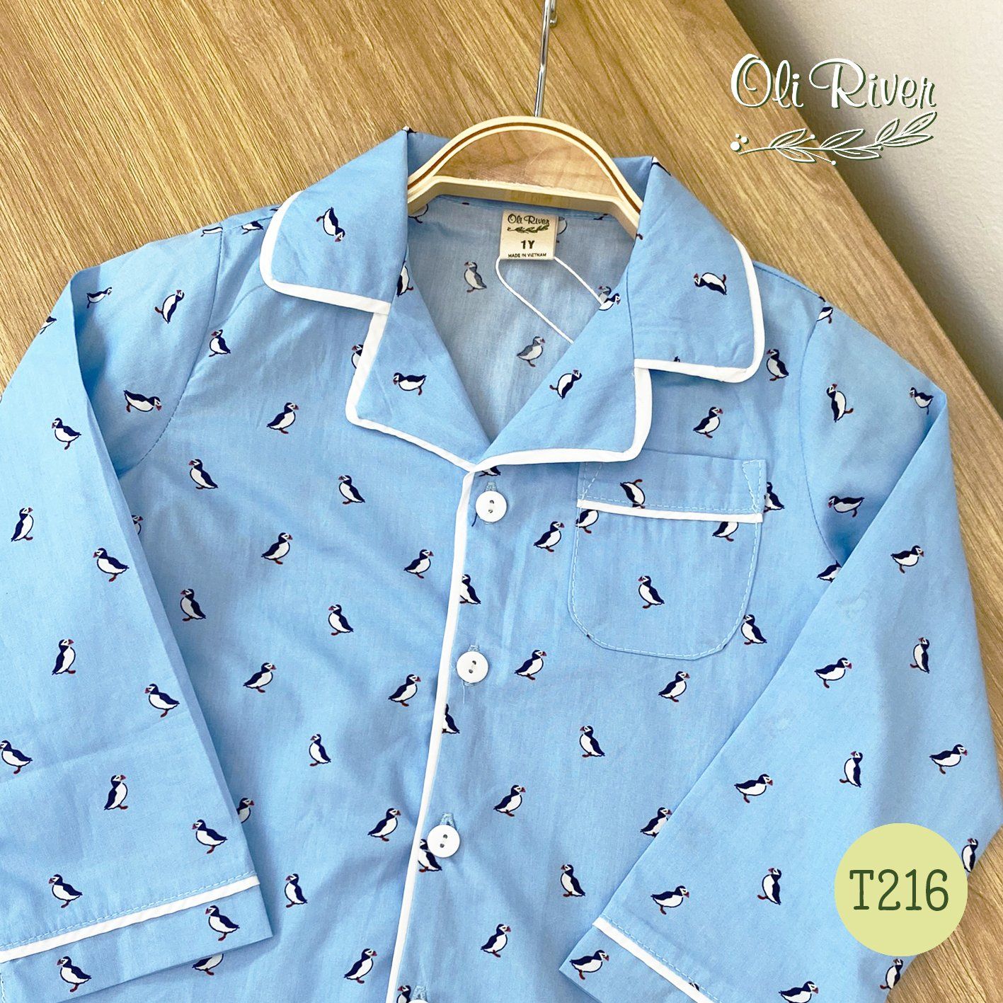 Bộ đồ bé trai dài tay hình chim cánh cụt oli river T216 - OBT007