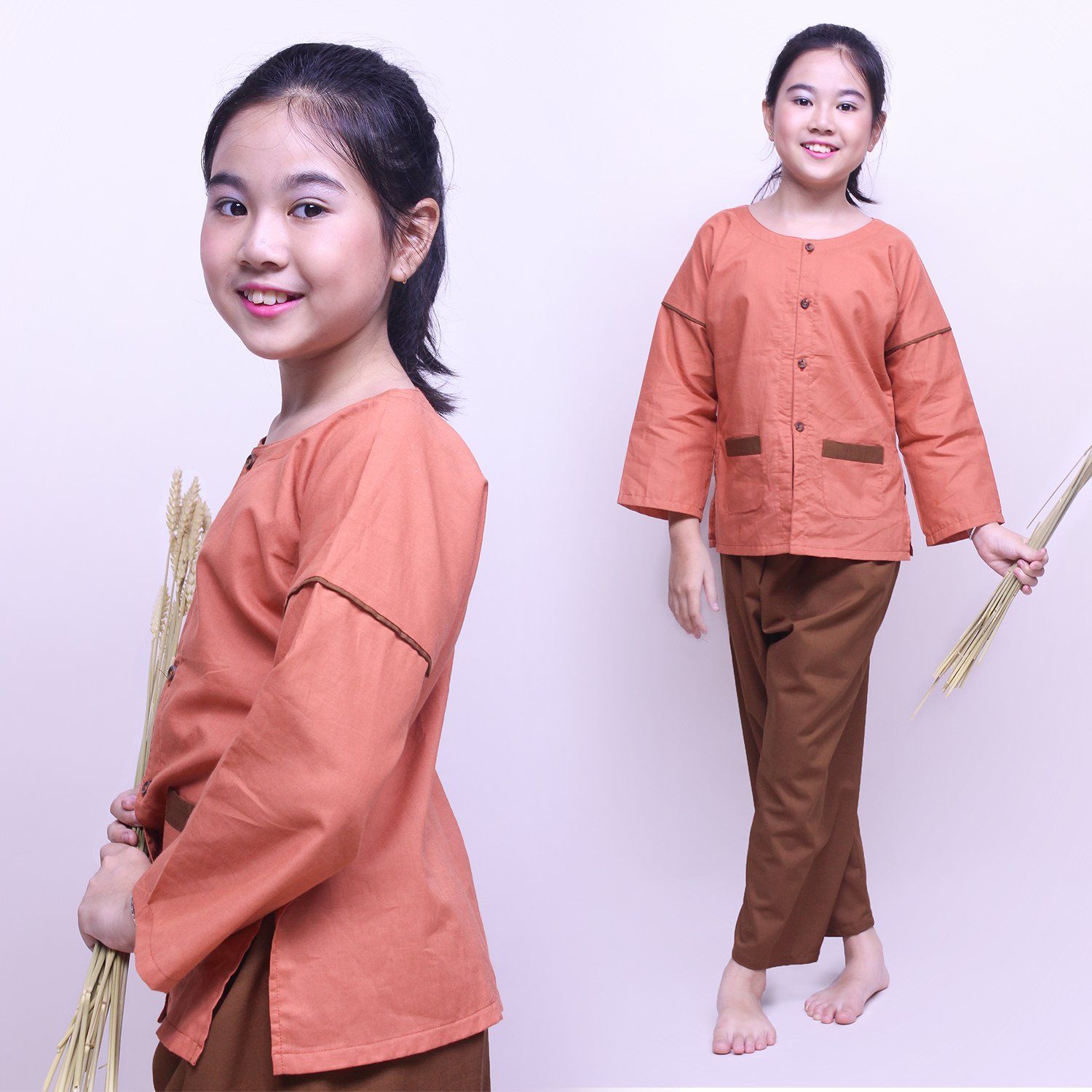 Bộ quần áo bà ba cho bé màu cam - CAB007