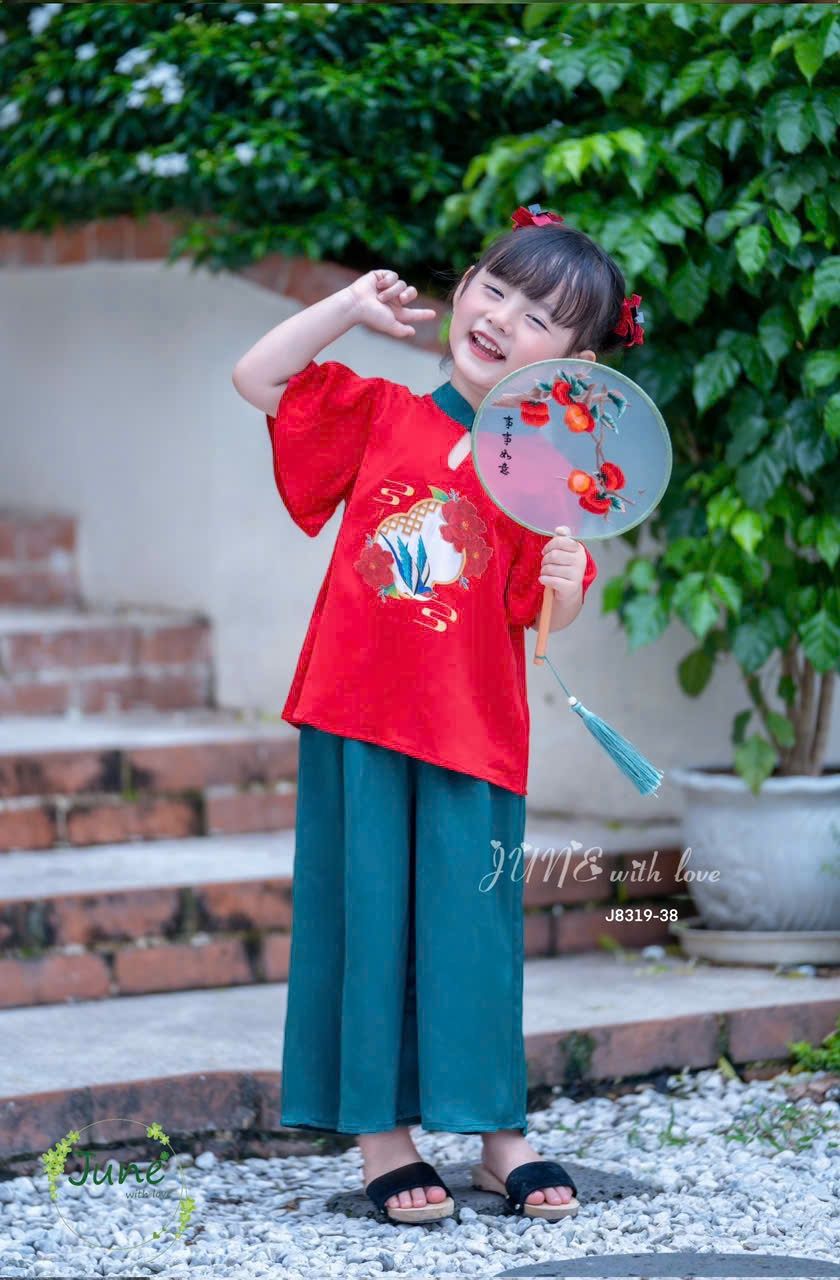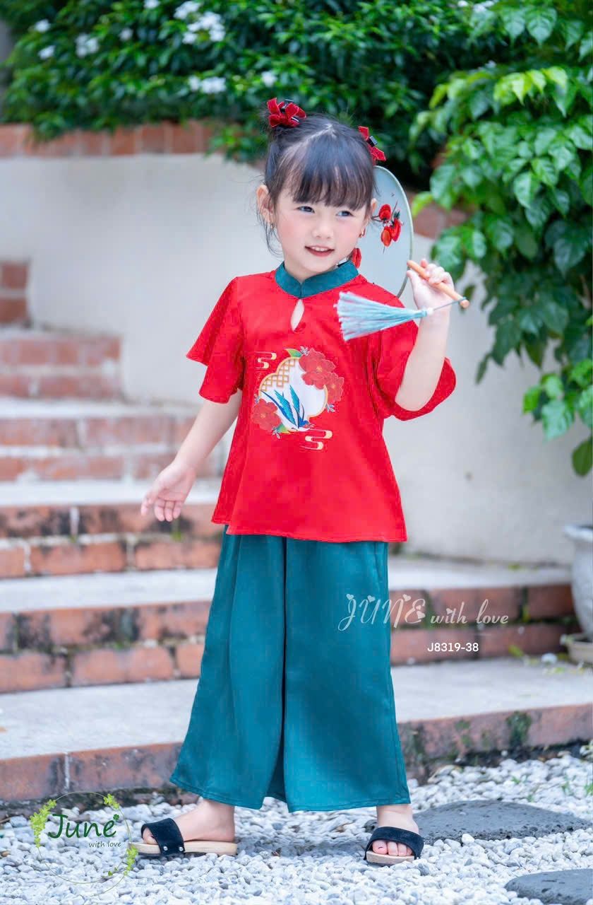 Bộ quần áo bé gái lụa J8319 đỏ may mắn