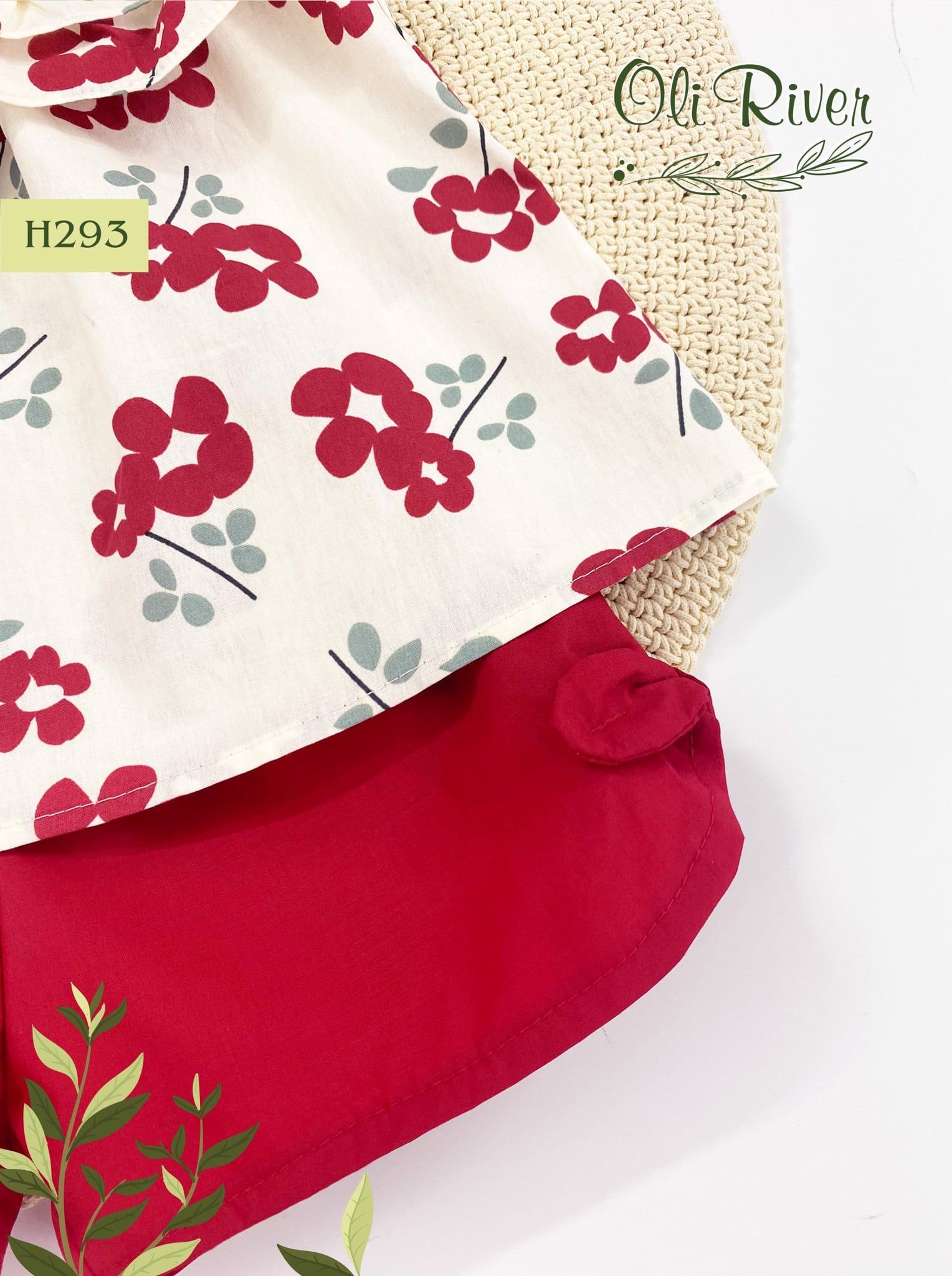 Bộ quần áo bé gái sát nách hoa thô đỏ phối quần đỏ trơn oli river H293-3 - ODB166
