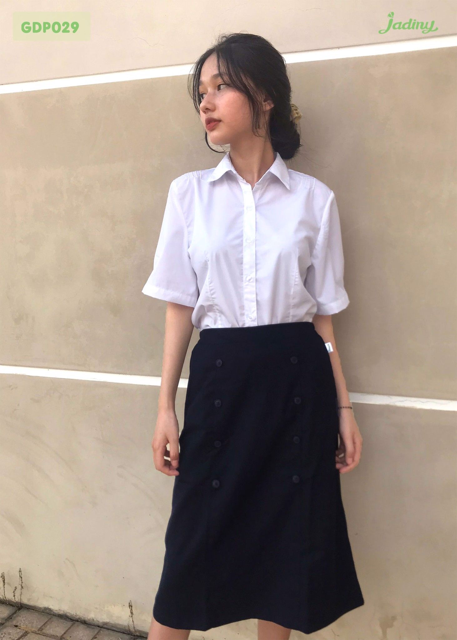 Chân váy học sinh chữ A rã ba mảnh đính nút - GDP029