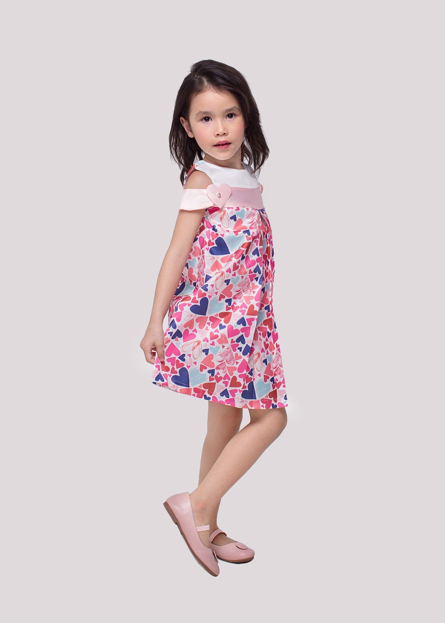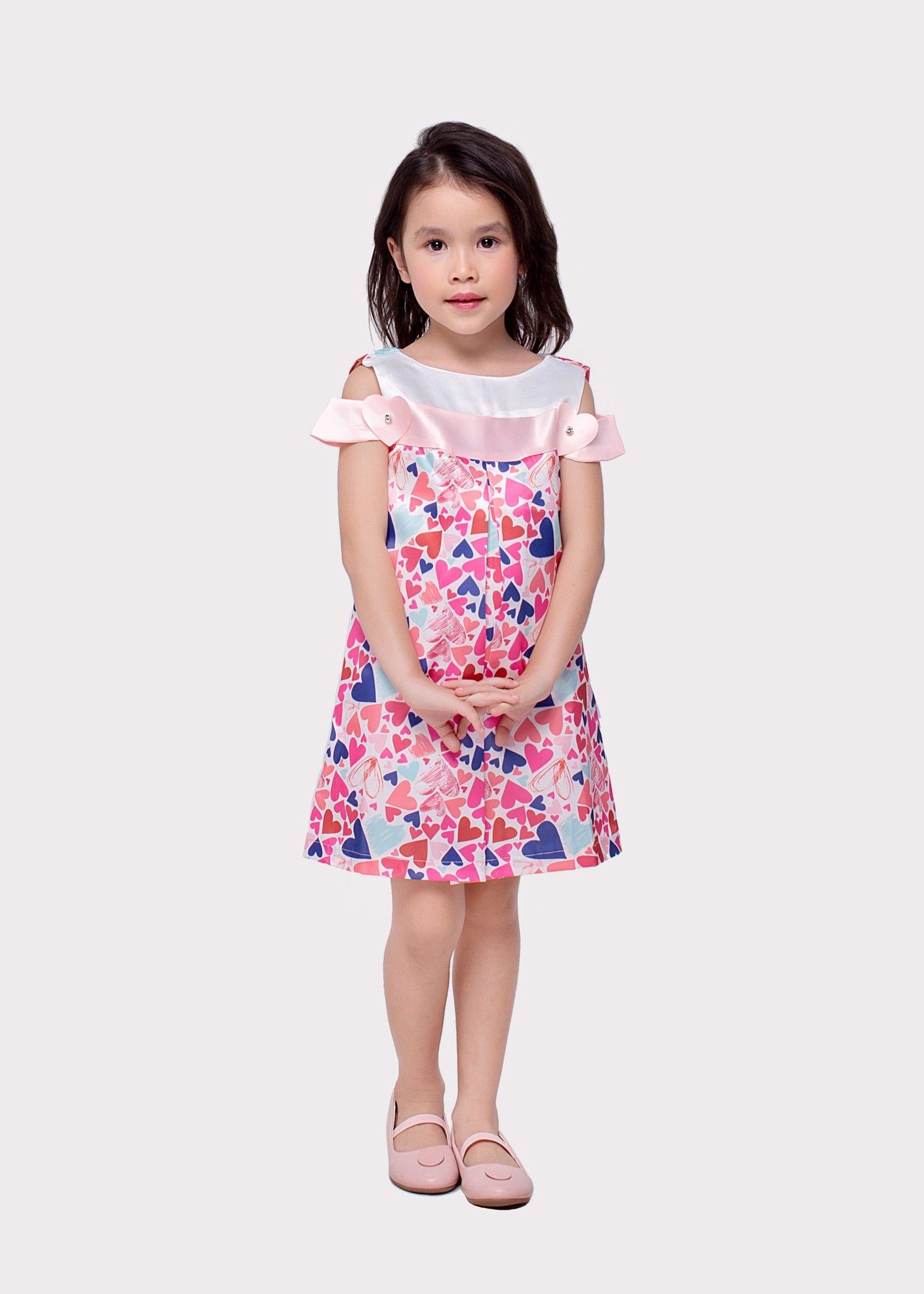 Đầm chữ a xếp li tay ngang hồng bé gái - DG186