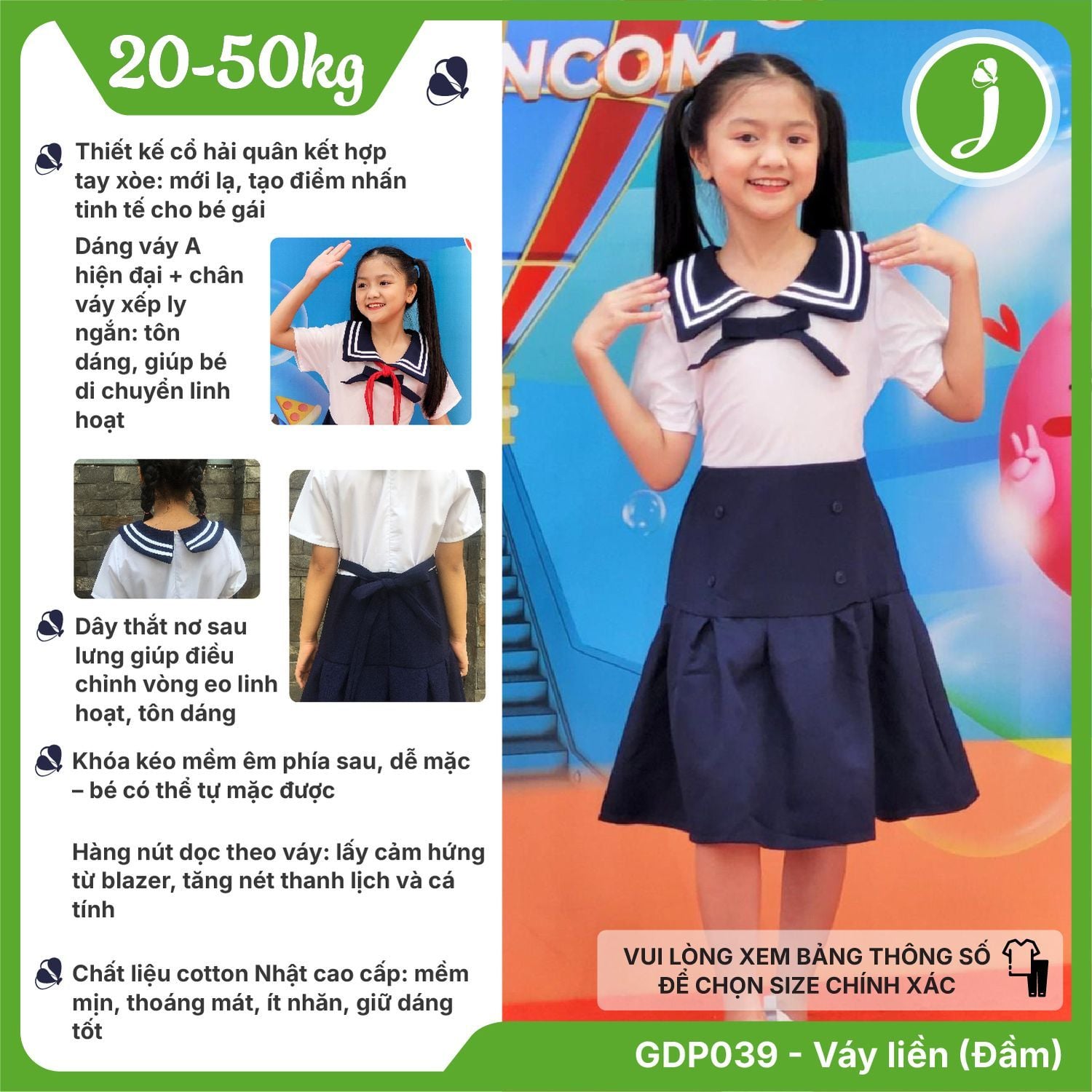 Đầm học sinh cổ hải quân váy xếp li chất liệu cotton Nhật cao cấp mềm mịn, thoáng mát - GDP039