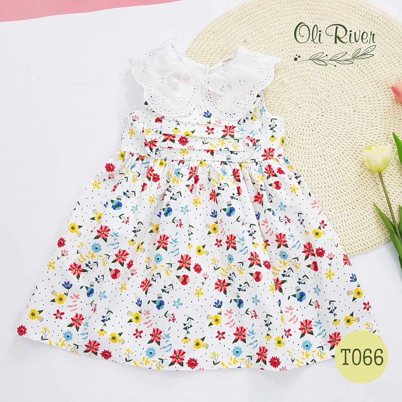Đầm hoa 2 màu váy cực yêu màu đỏ oli river - T066 - ODZ037