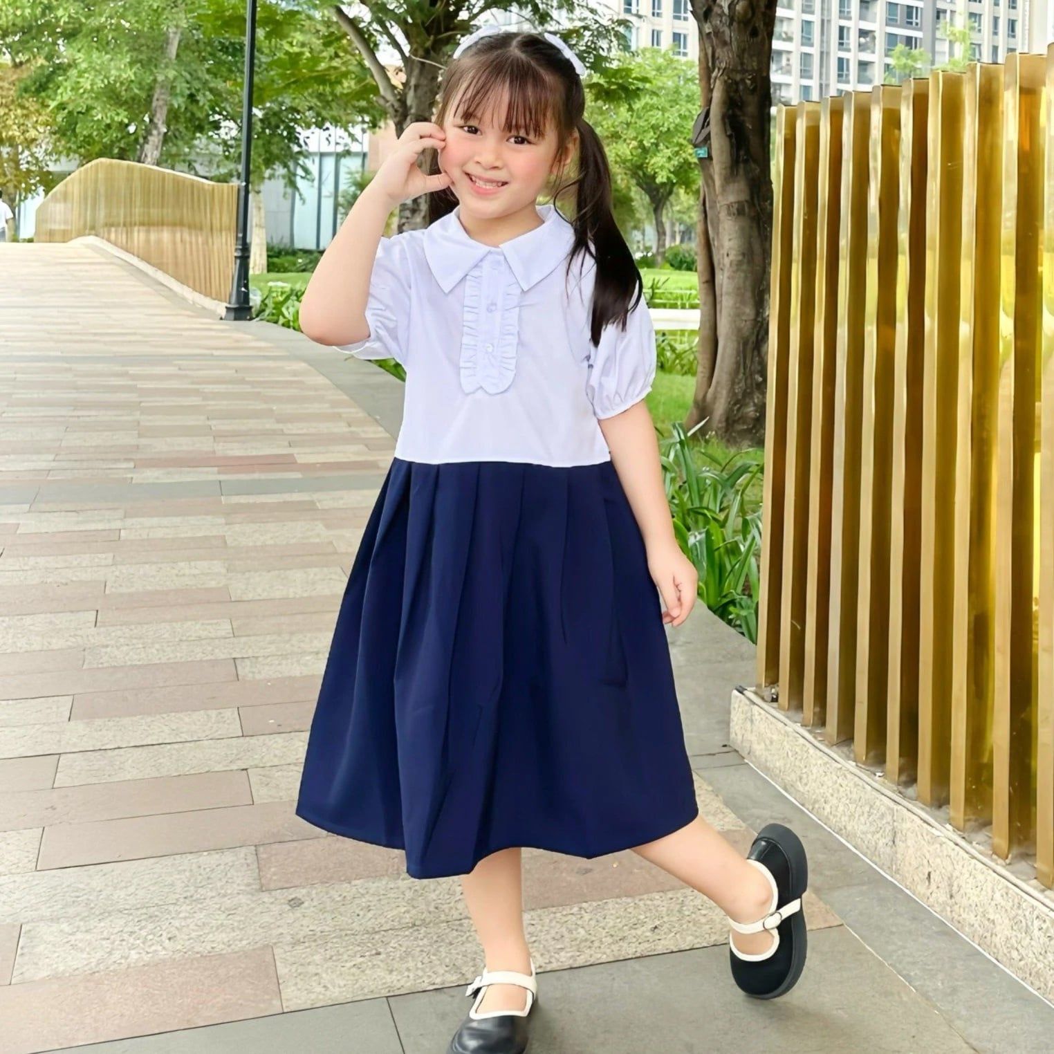 Đầm học sinh nữ cổ sơ mi xẻ bèo - GDP056
