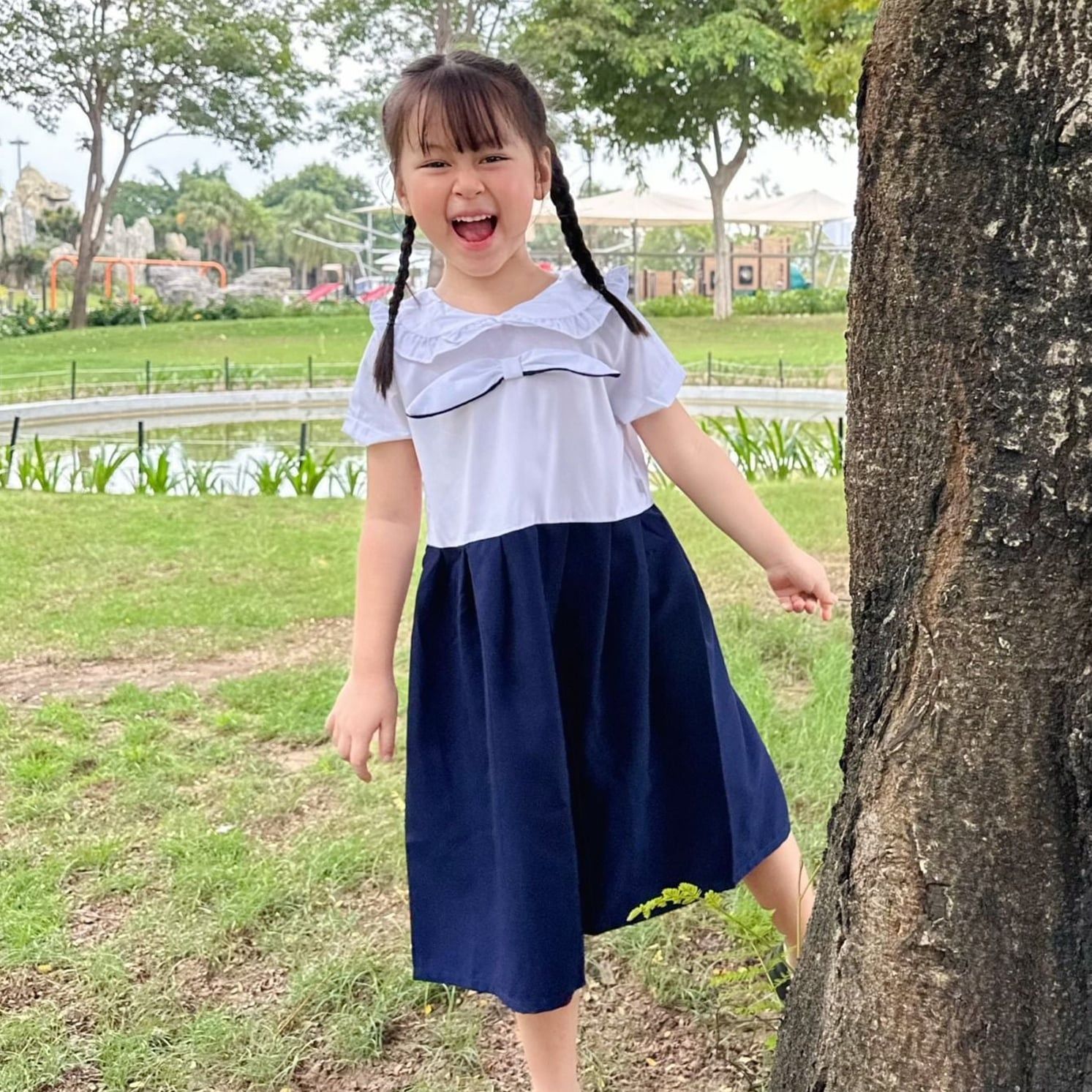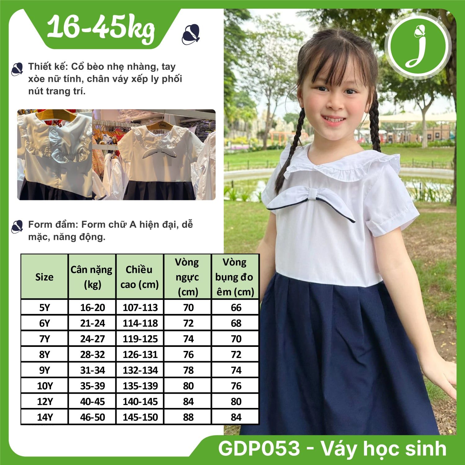 Đầm học sinh xếp ly cổ bèo chất liệu cotton nhật GDP053