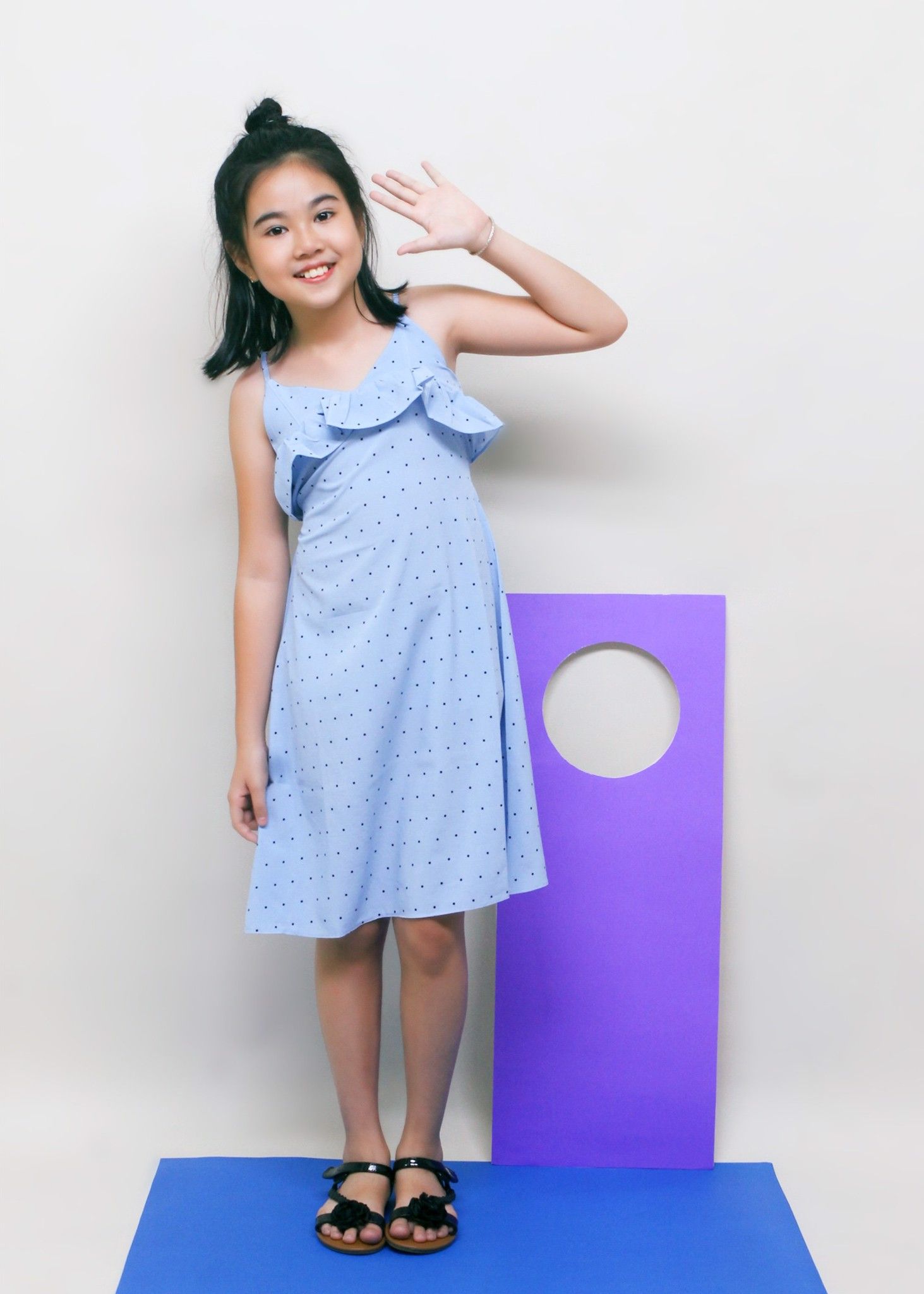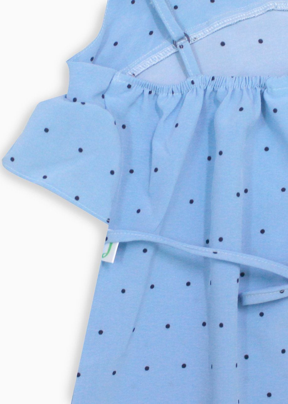 Đầm maxi hai dây bèo ngực chấm bi xanh bé gái - DG198