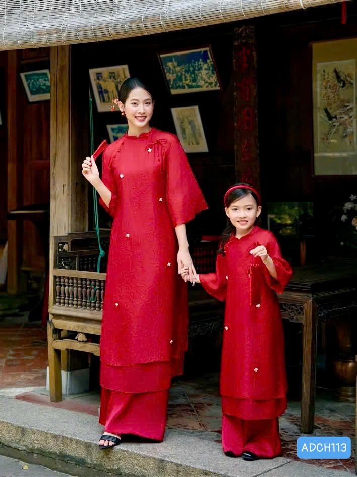 Áo dài đỏ bé gái đính hoa ADCH113 - OAD064