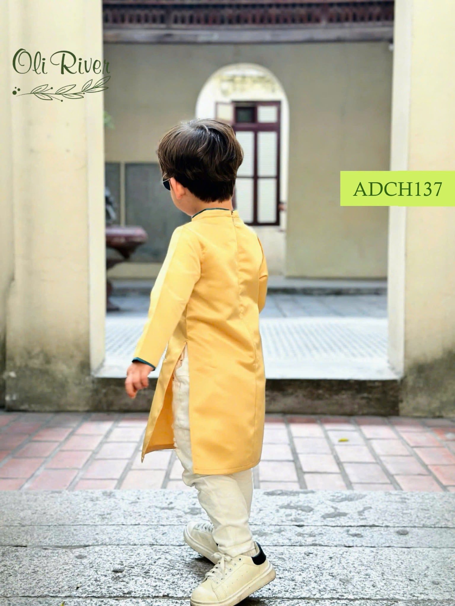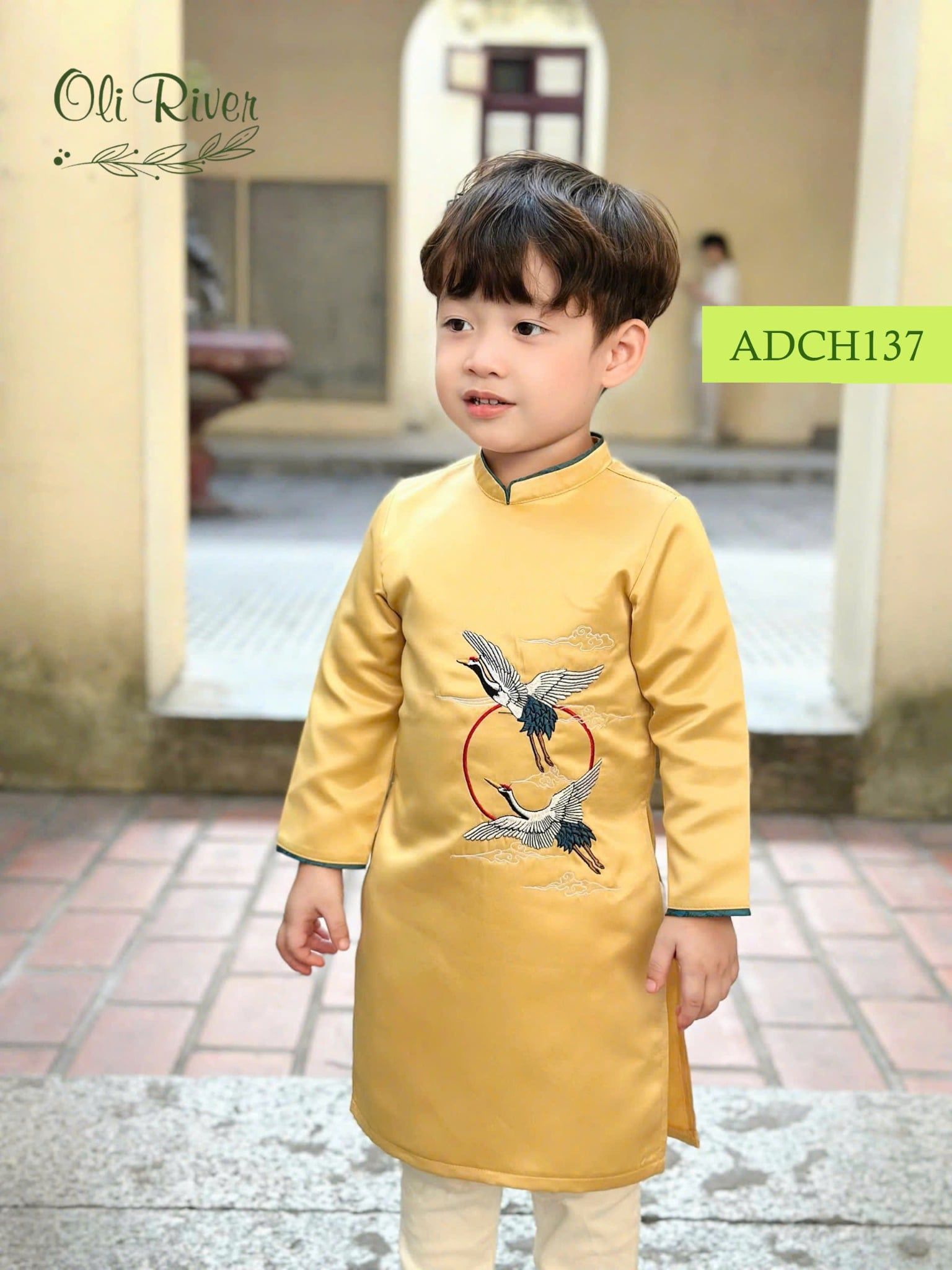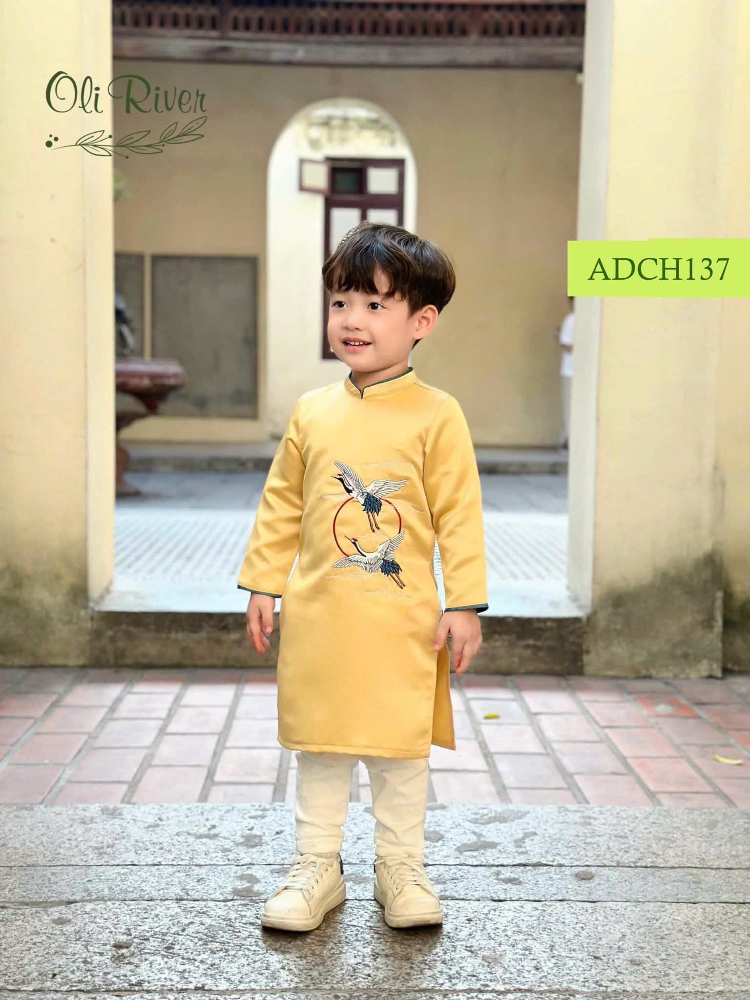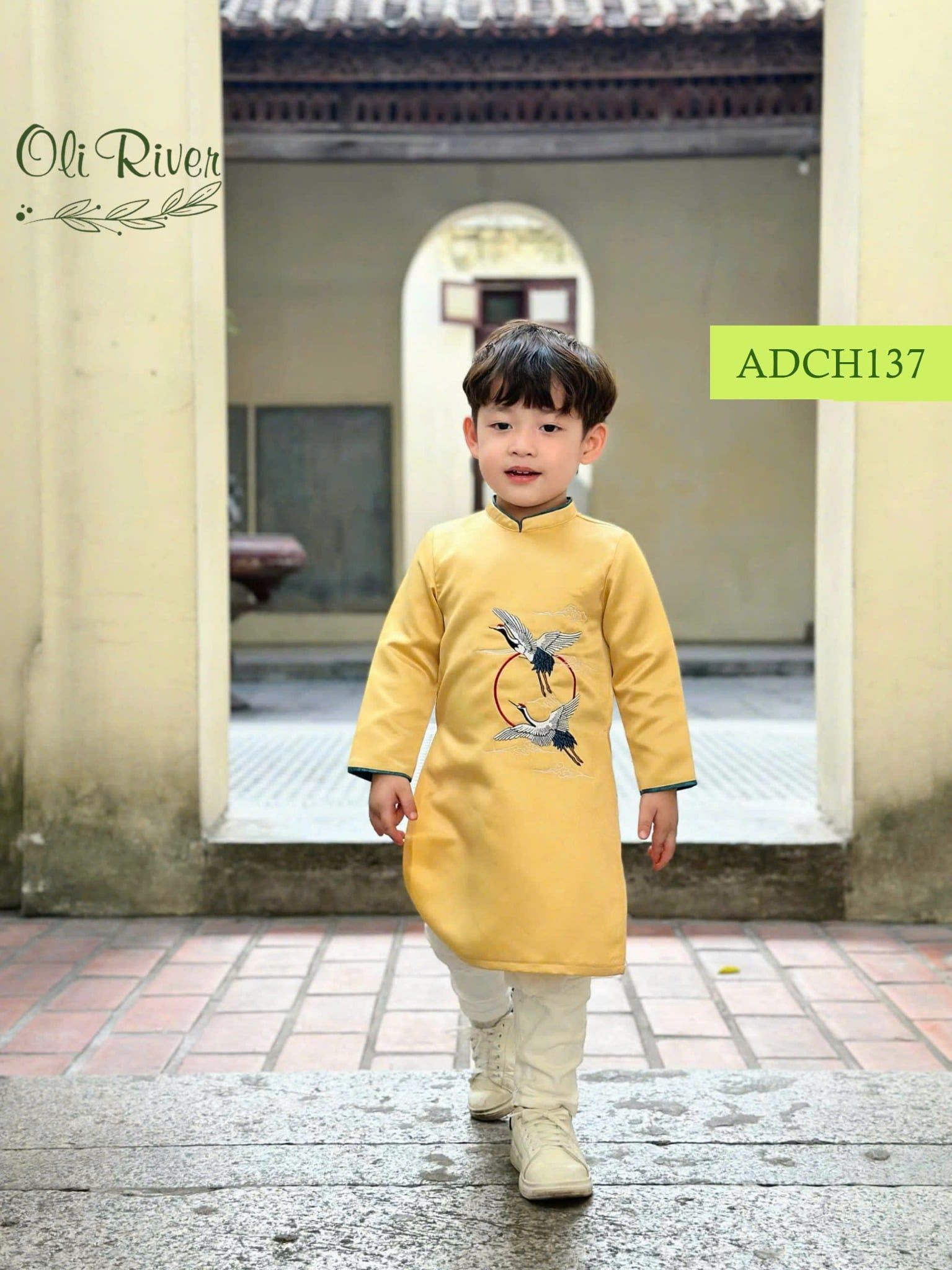 Áo dài bé trai thêu hạc màu vàng ADCH137