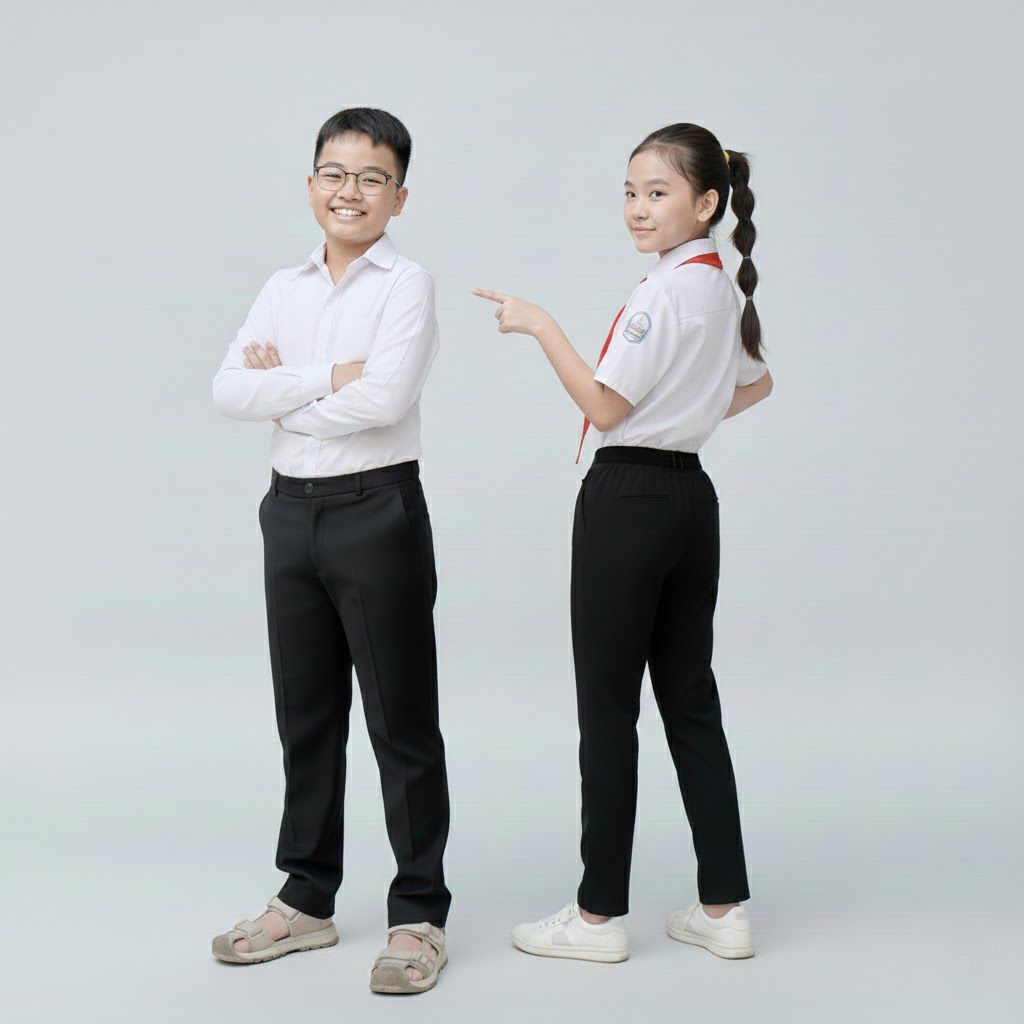 Quần dài học sinh kaki cao cấp lưng thun khóa kéo màu đen - TDP045