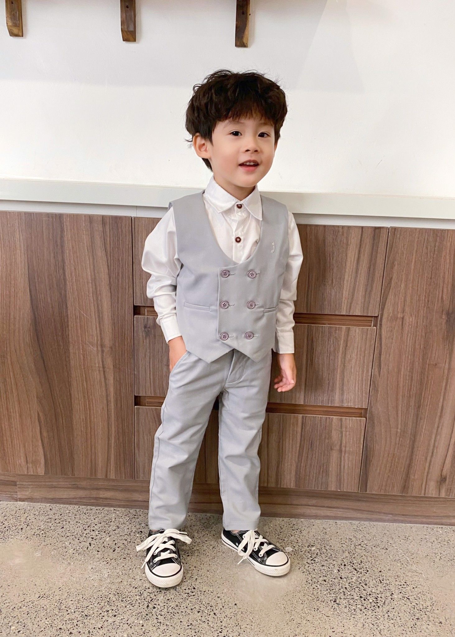 Quần dài tiệc yếm bé trai màu xám Jadiny - TQD011