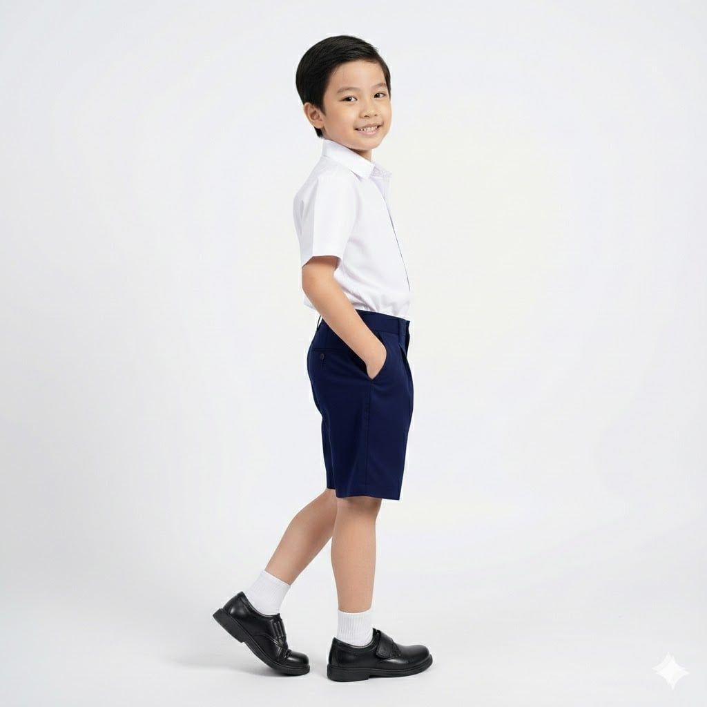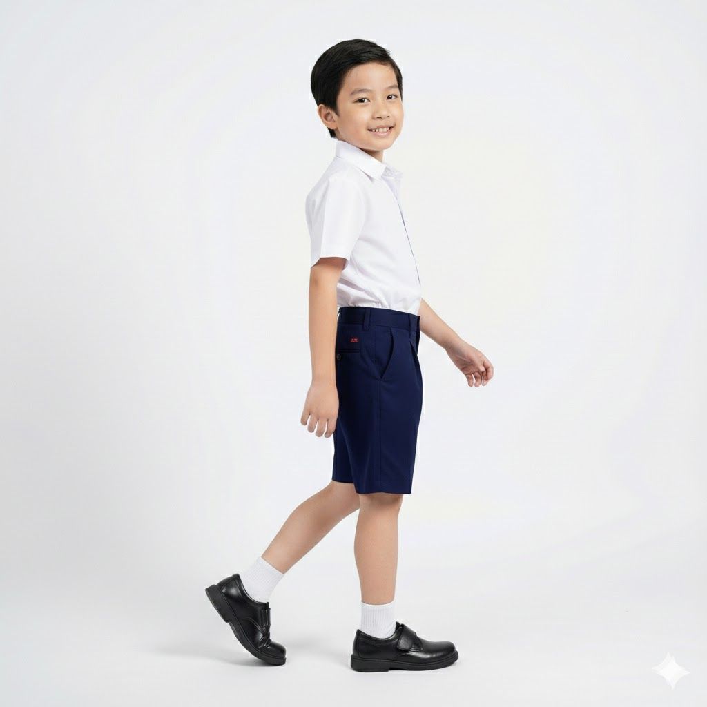 Quần ngắn học sinh nam kaki xanh đen dây kéo lưng thun cao cấp TDP039