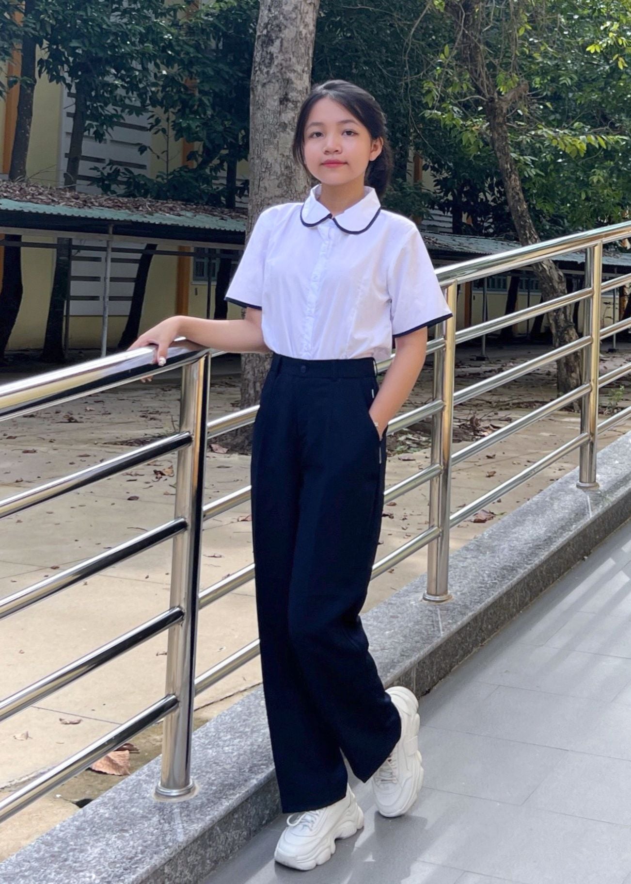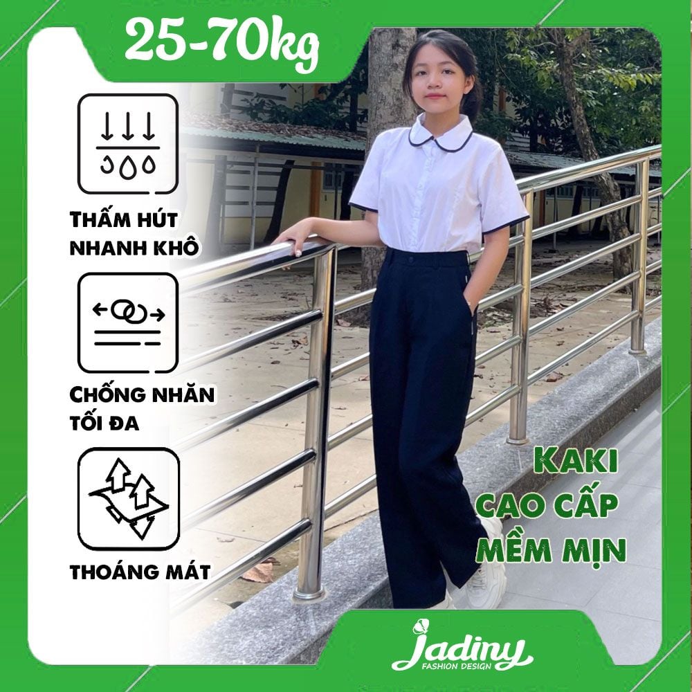 Quần tây học sinh nữ form xuông xanh đen cao cấp, mềm mịn, thoáng mát - GDP037