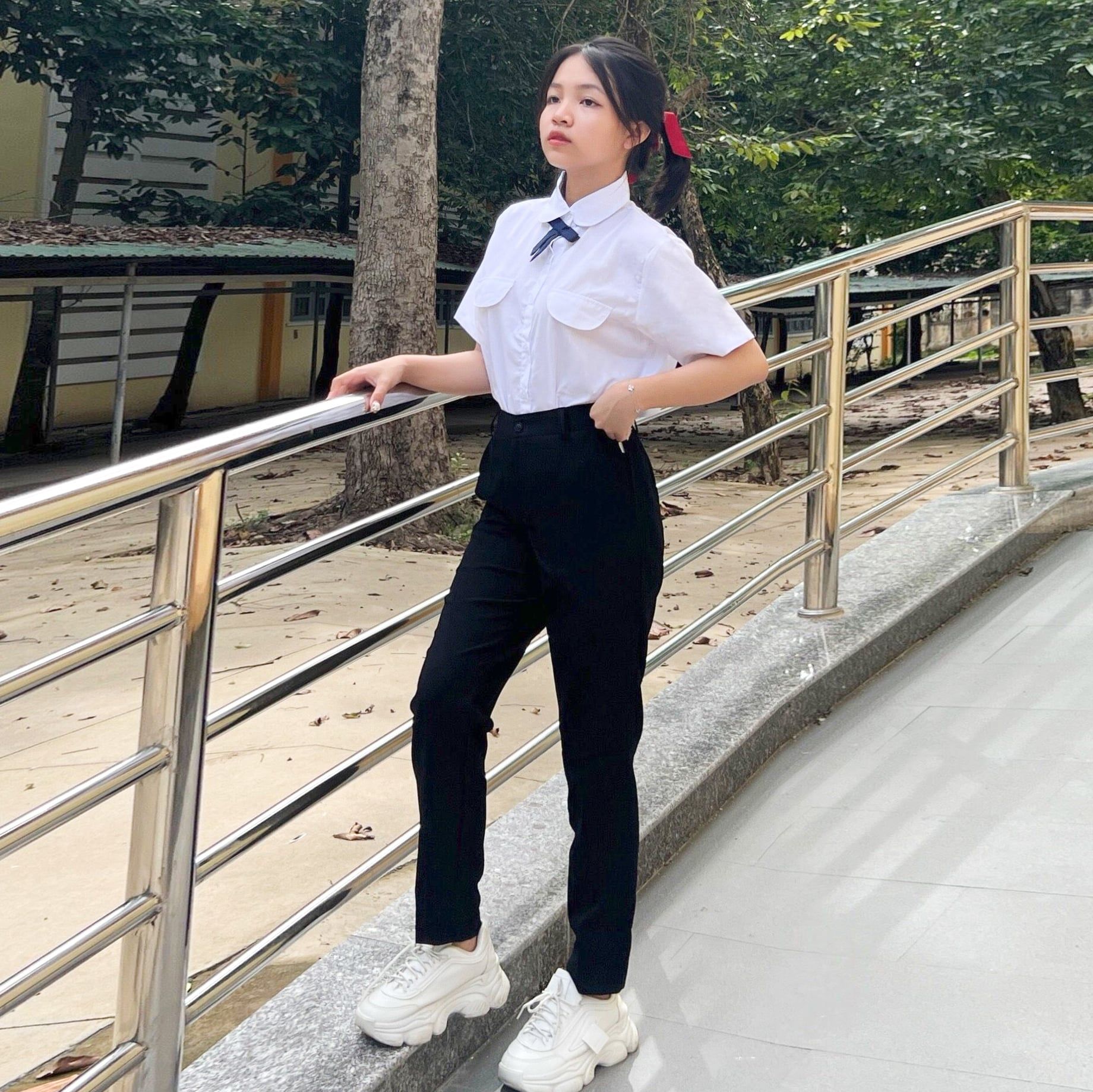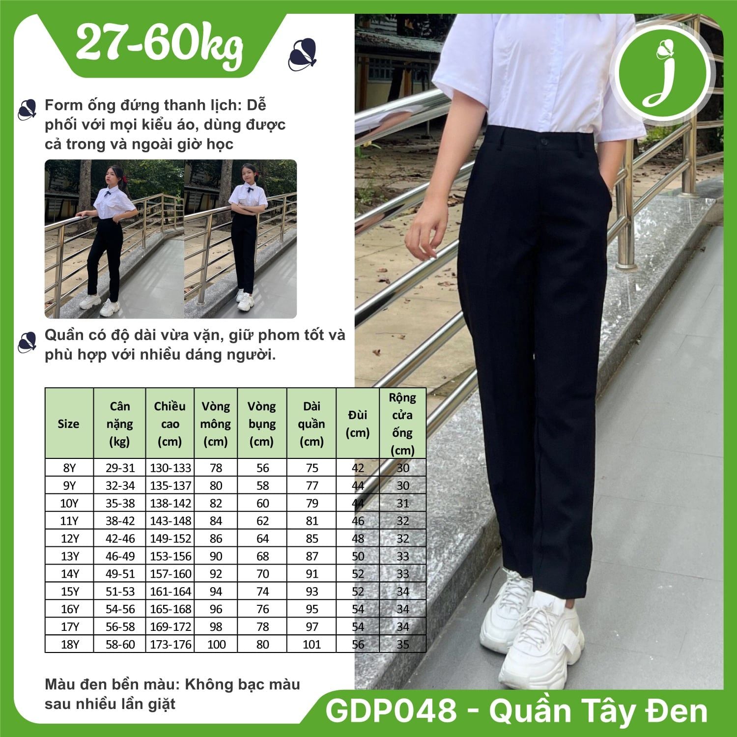Quần tây học sinh nữ ống đứng vải xuân hương màu đen - GDP048