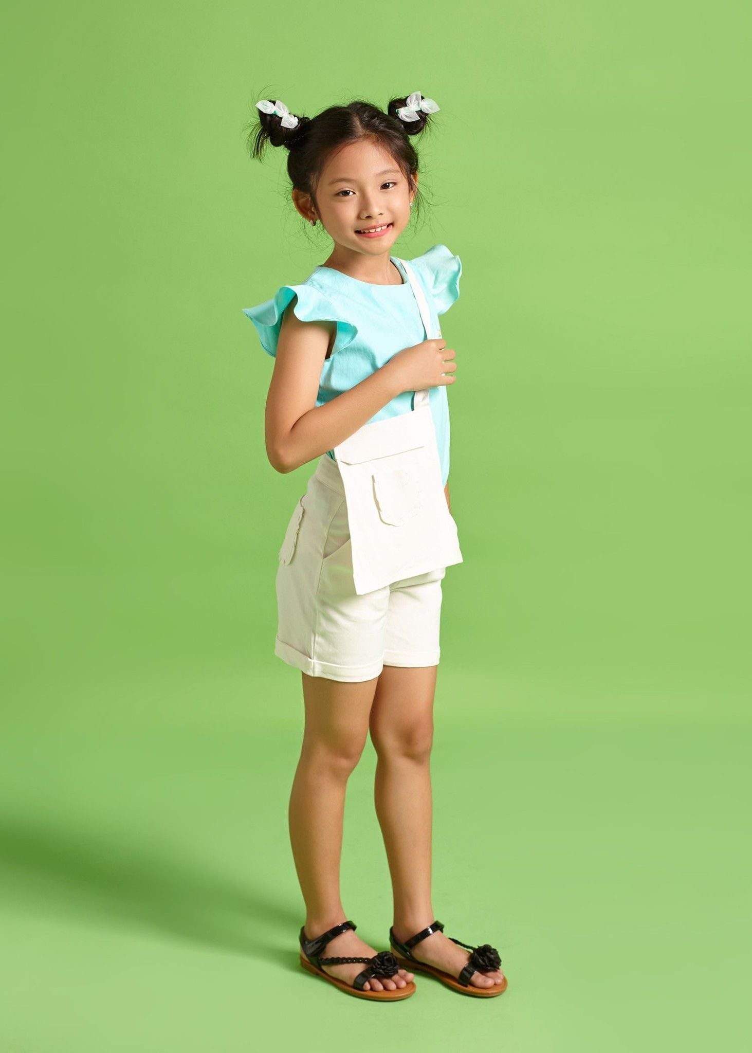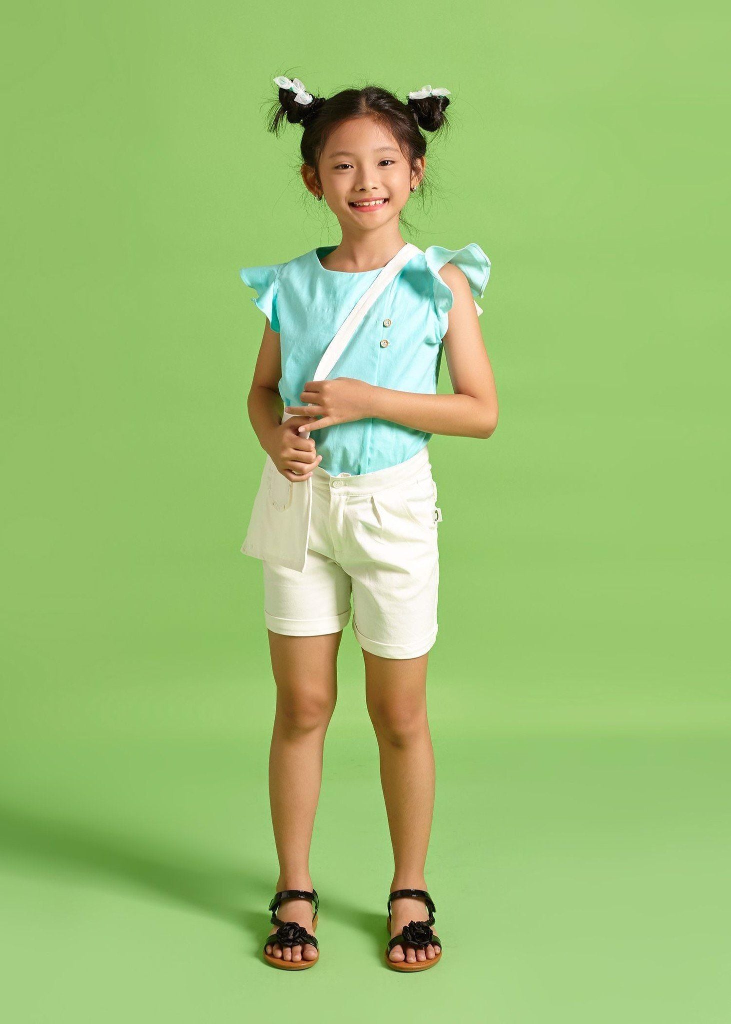 Quần yếm ngắn bé gái đa năng trắng - QYG006