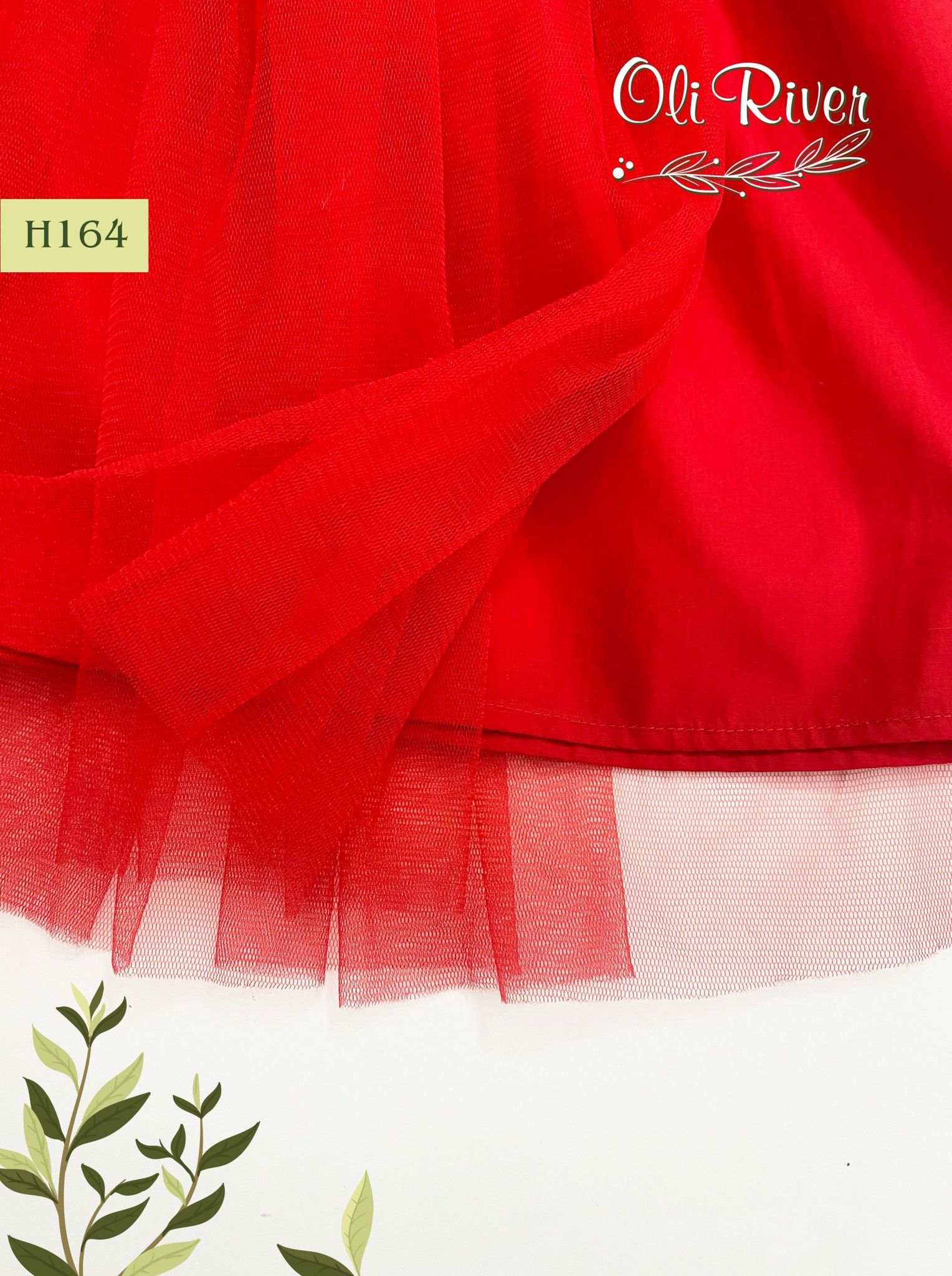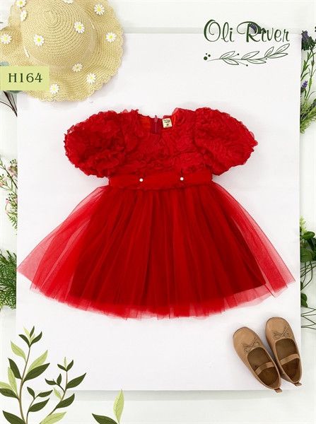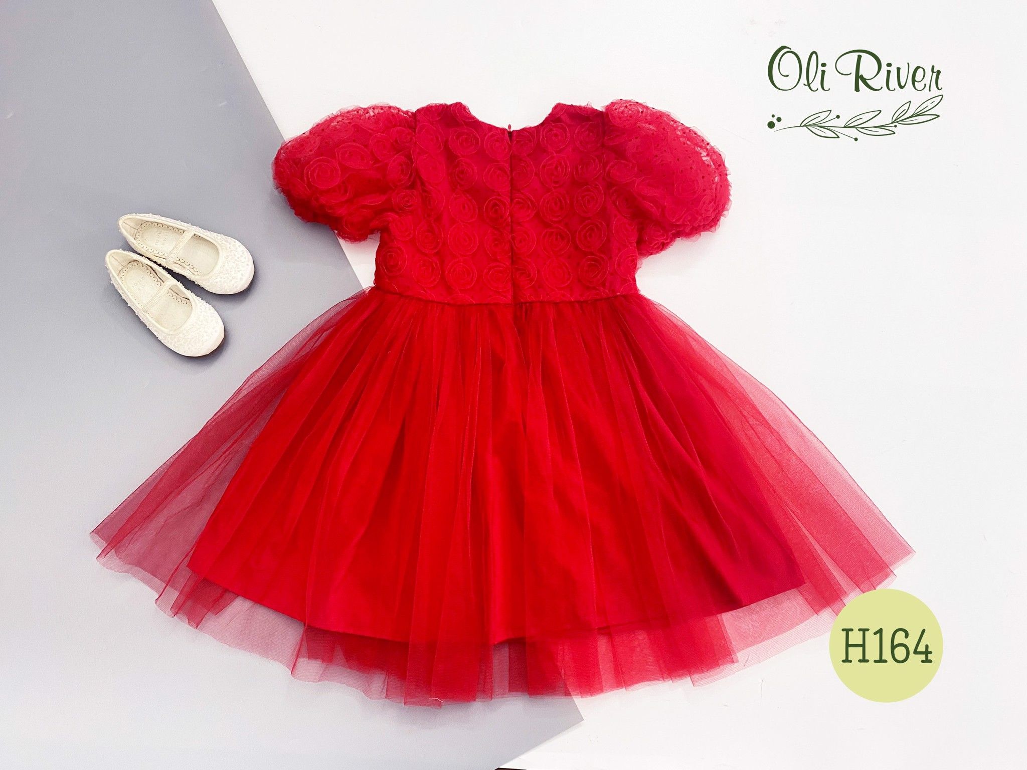 Váy hoa đỏ tay bồng phối lưới đỏ bé gái oli river H164-2 - ODZ369
