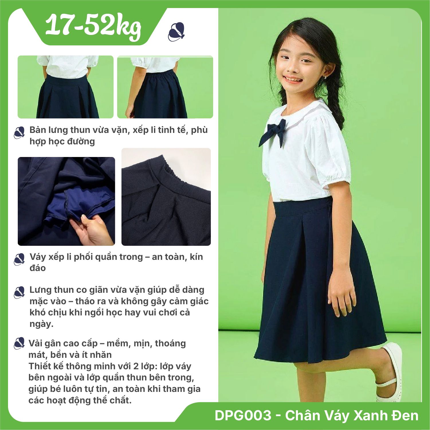 Chân váy xếp li nhẹ nhàng được thiết kế với 2 lớp: lớp váy và lớp quần thun bên trong, tạo sự tự tin cho bé gái khi tham gia các hoạt động vận động trong trường học.