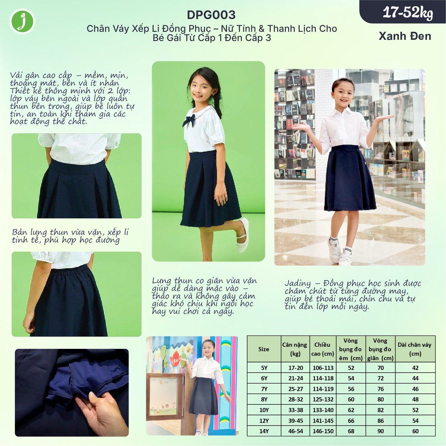 Váy đồng phục học sinh cấp 1 đến cấp 3 cho bé gái mang đến sự đa dạng trong kiểu dáng, và một trong những mẫu được ưa chuộng nhất là chân váy xếp li. Với phong cách retro, chân váy xếp li nhẹ nhàng, điểm nhấn tinh tế tại phần eo.